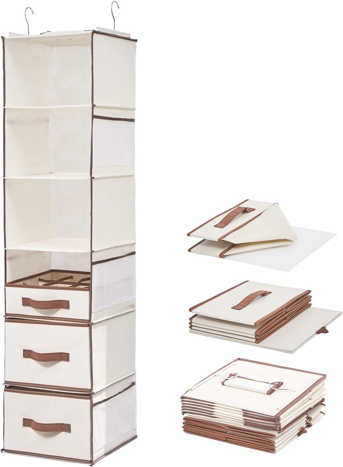 Foldable: drawer can removable, when not need organize can folable the hanging shelves ,save space .when need organize can open it create extra storage .