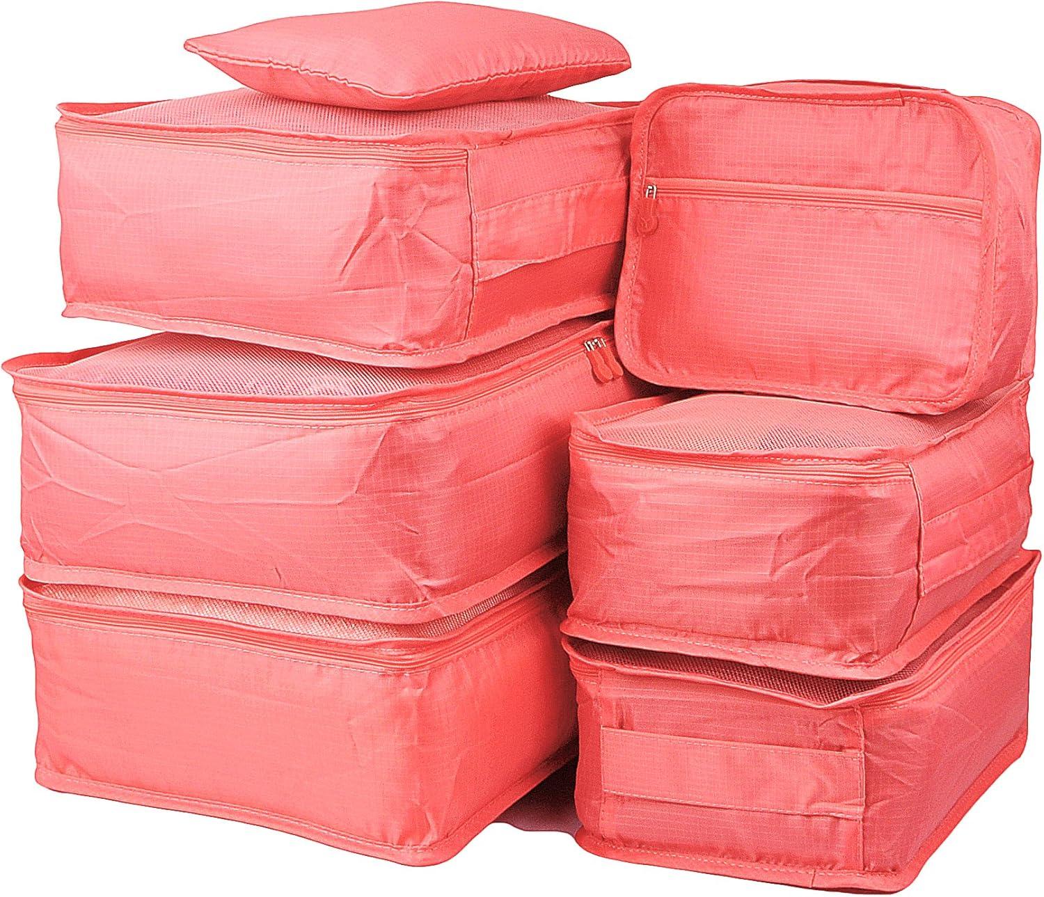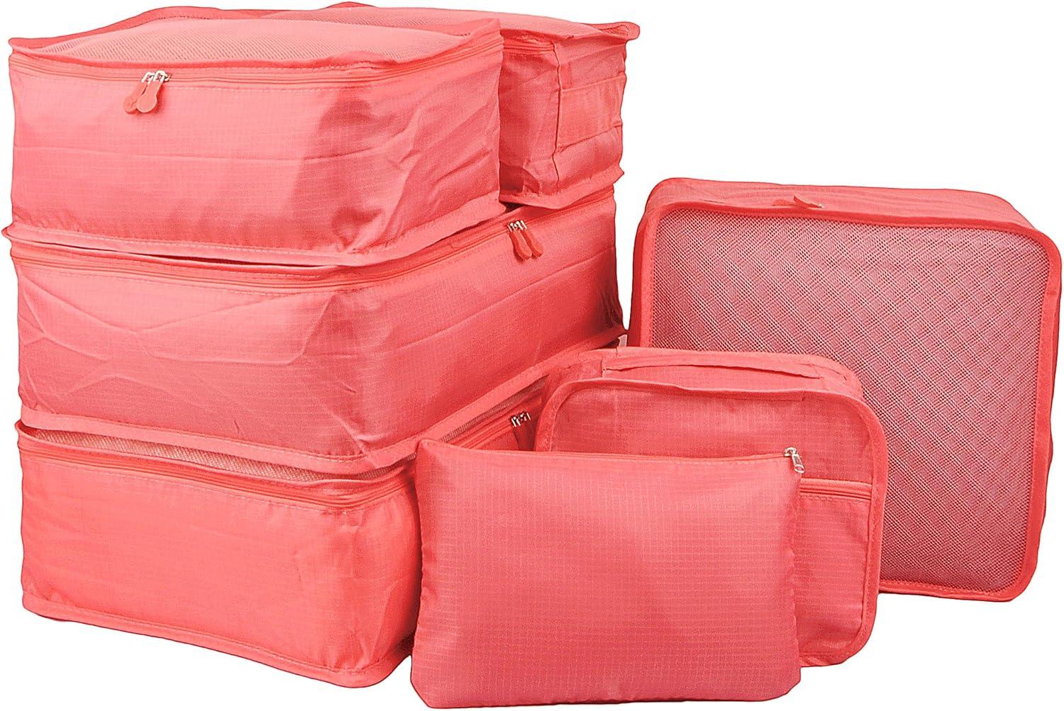 Vercord 7 Set Travel Packing Organizers Cubes Luggage Suitcase Organizer Bags Clothes Underwear Cube Shoe Pouch Pack Pink Leopard(Watermelon Red)