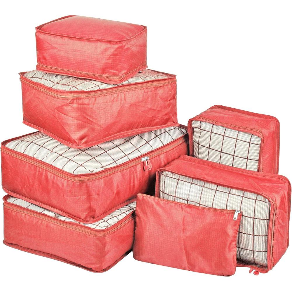 imageVercord 7 Set Travel Packing Organizers Cubes Luggage Suitcase Organizer Bags Clothes Underwear Cube Shoe Pouch Pack Pink LeopardWatermelon Red