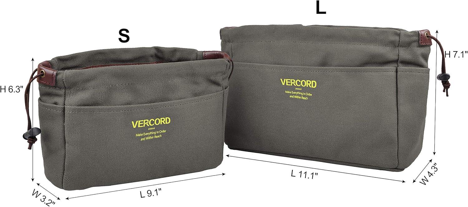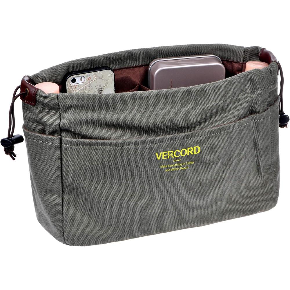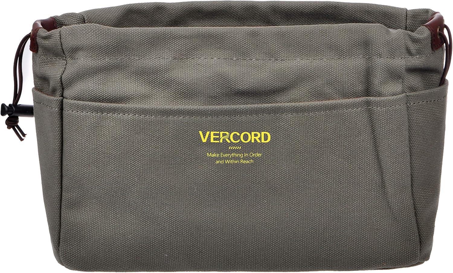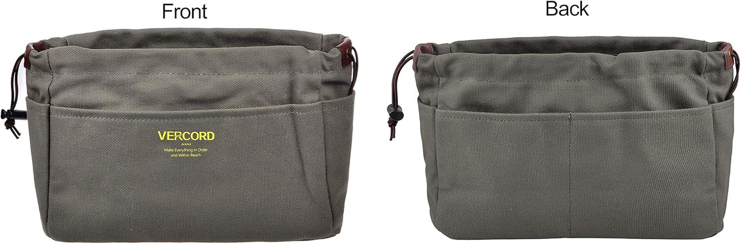 imageVercord Canvas Handbag Organizers Sturdy Purse Insert Organizer Bag in Bag 10 Pockets Beige SmallColor Army Green