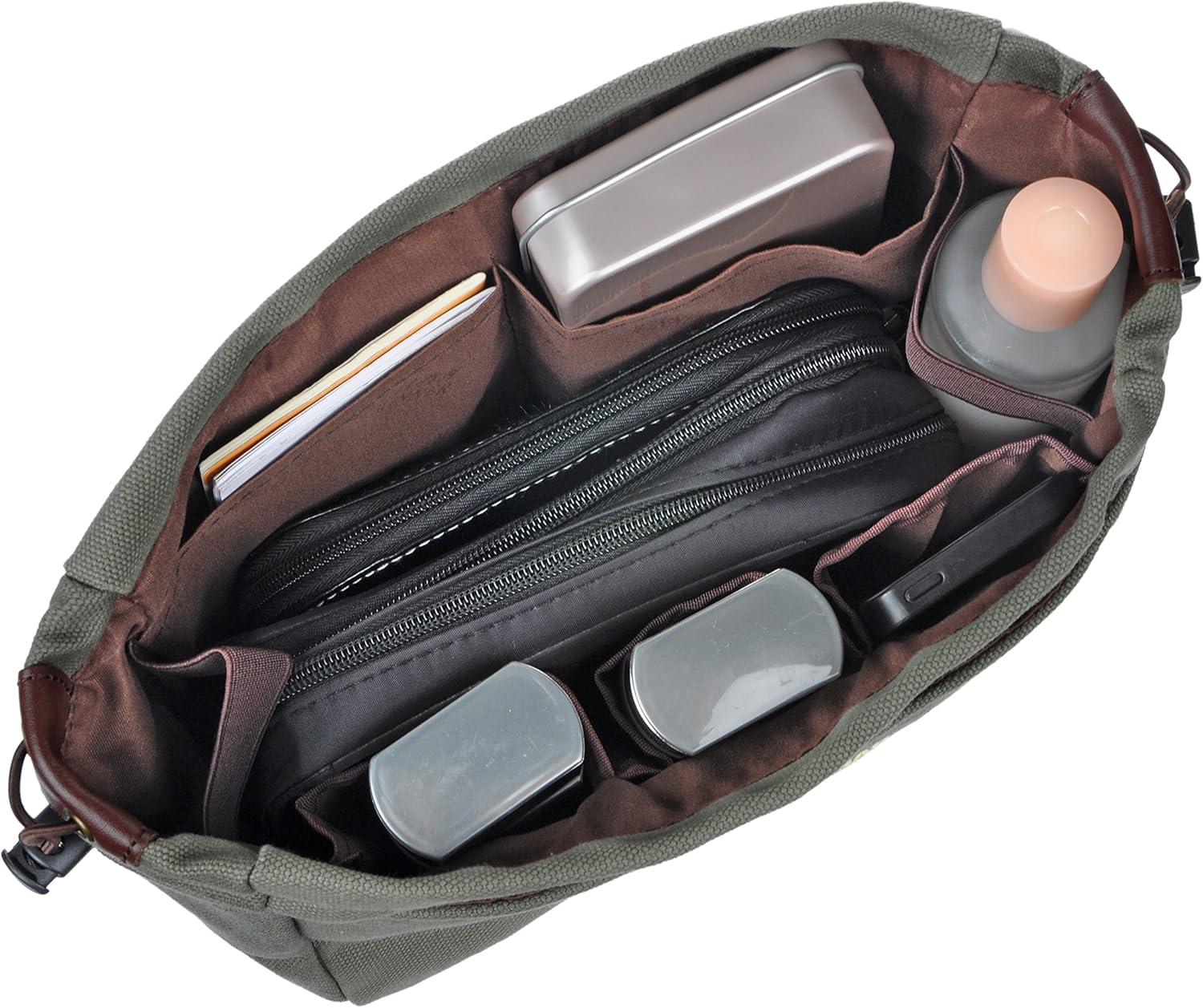 Vercord Canvas Handbag Organizers, Sturdy Purse Insert Organizer Bag in Bag, 10 Pockets Beige Small(Color Army Green)