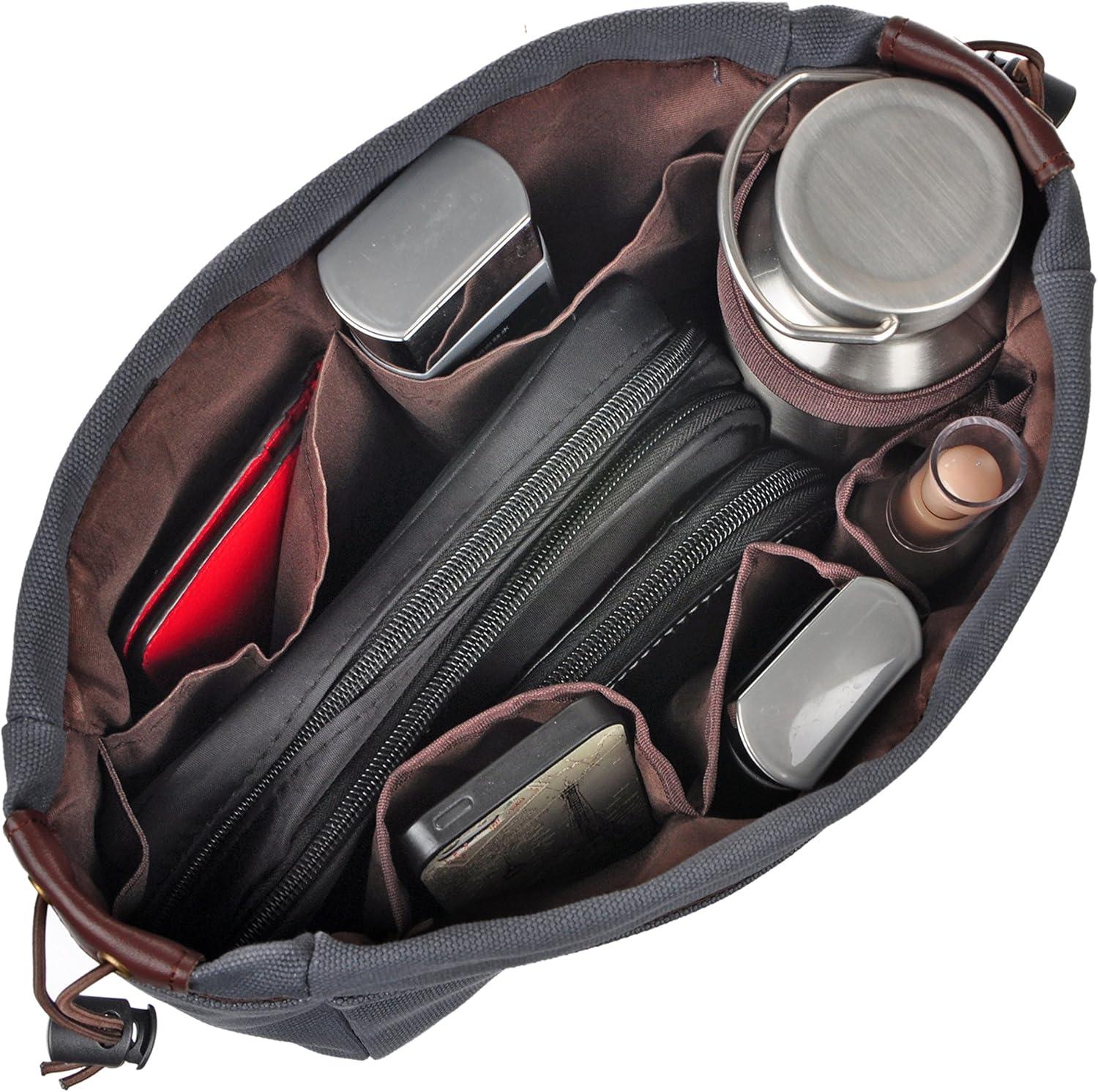 Vercord Canvas Handbag Organizers, Sturdy Purse Insert Organizer Bag in Bag, 10 Pockets Beige Small(Grey)