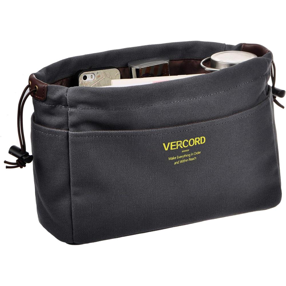 imageVercord Canvas Handbag Organizers Sturdy Purse Insert Organizer Bag in Bag 10 Pockets Beige SmallGrey