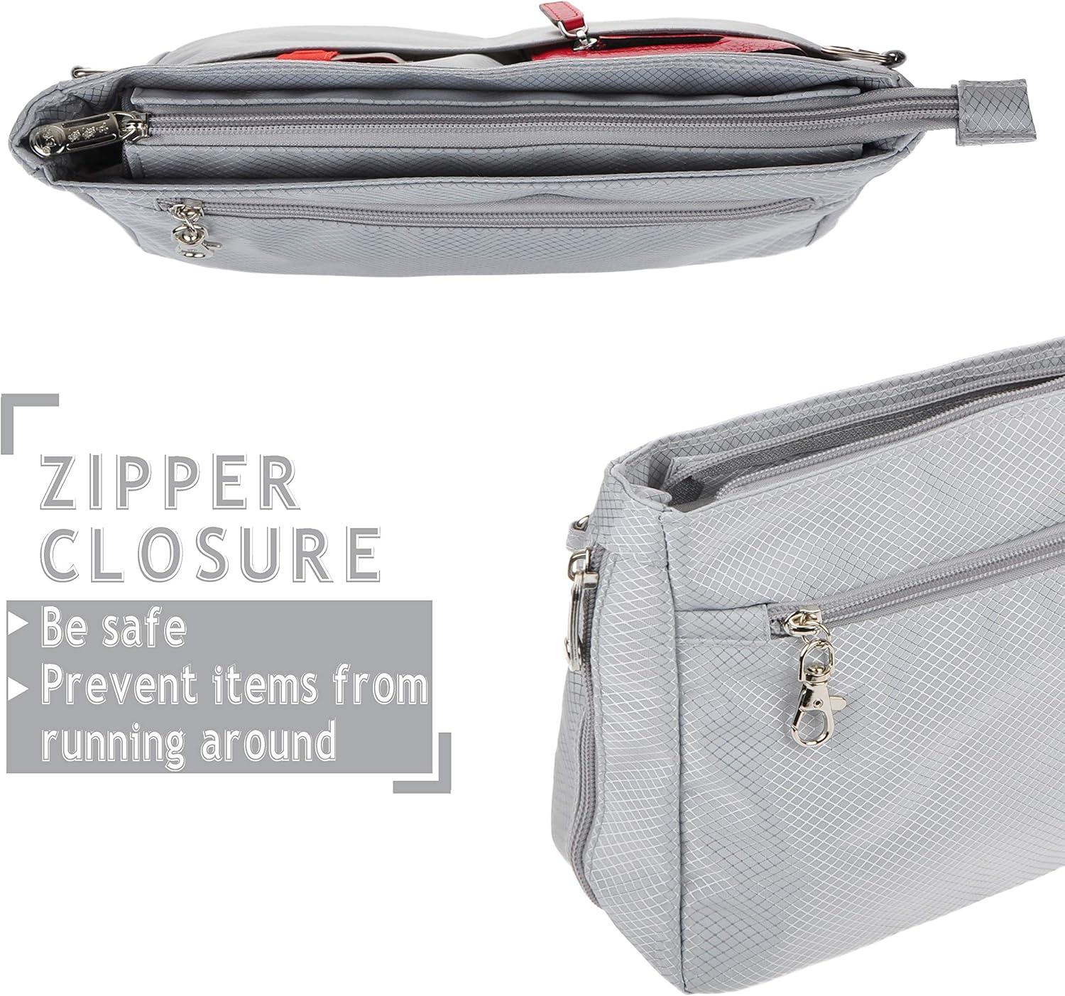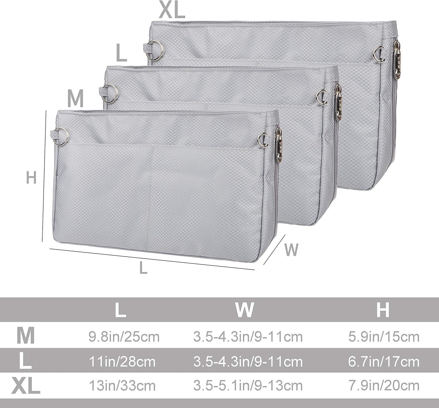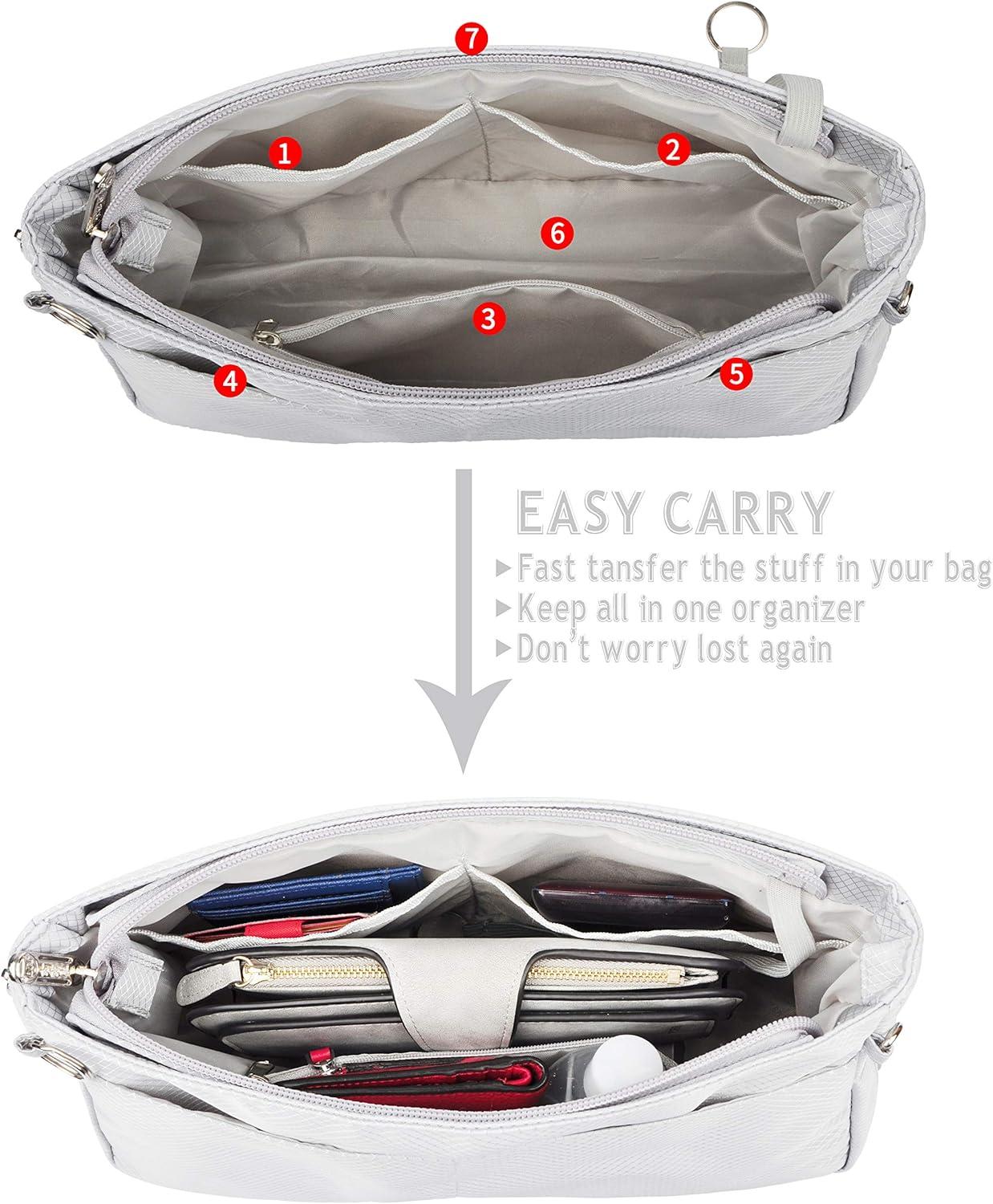 imageVercord Expandable Nylon Handbag Purse Organizer Insert Liner Shaper Bag in Bag Beige Grey MediumBlack