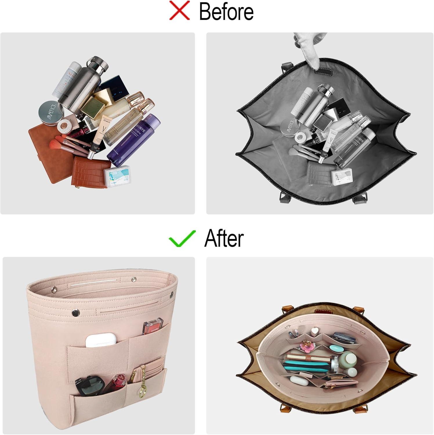 It is better to consider the height of the organizer (much lower than the handbag) to ensure it does not affect the closure of the handbag, especially the width of choosing organizer is wide.
