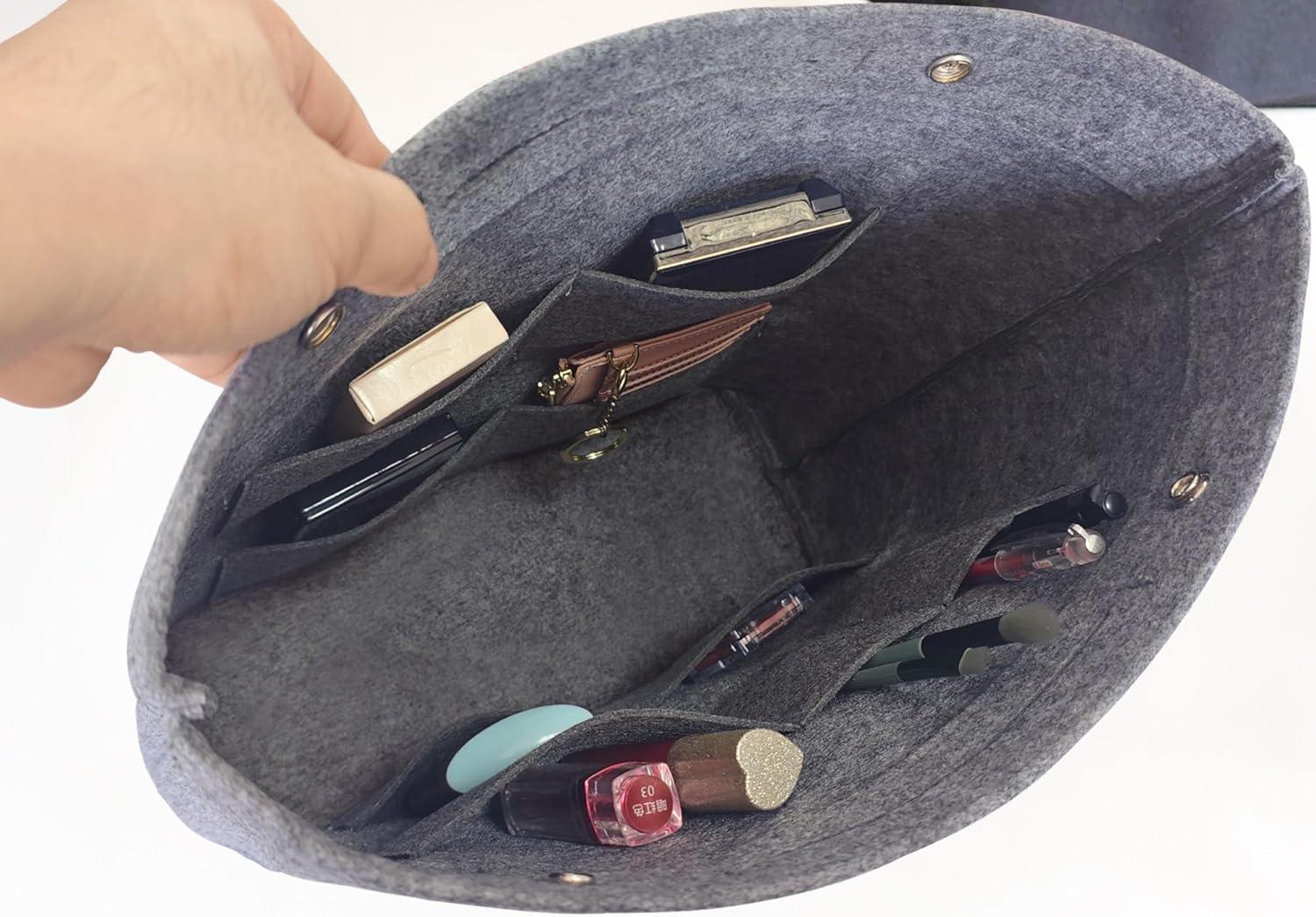 Vercord Extra Tall Felt Bag Organizer Vertical Height Design for Deep Tote and Backpack Bags Cream Beige(Light Grey)