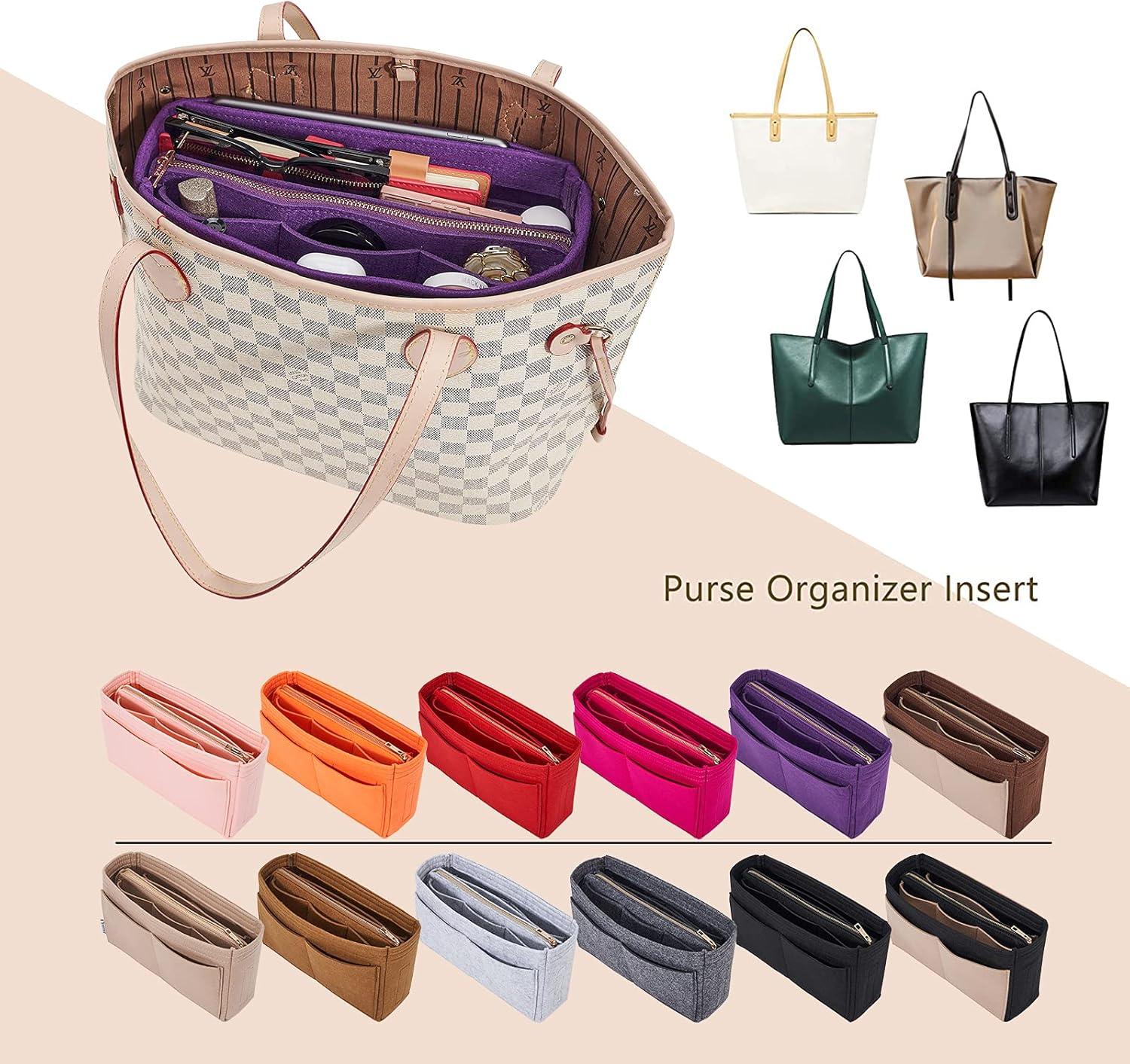 Vercord Felt Organizer Insert For Purse Handbag Tote Bag In Bag Inside Shaper Divider Neo Beige Slender Medium(A Purple)