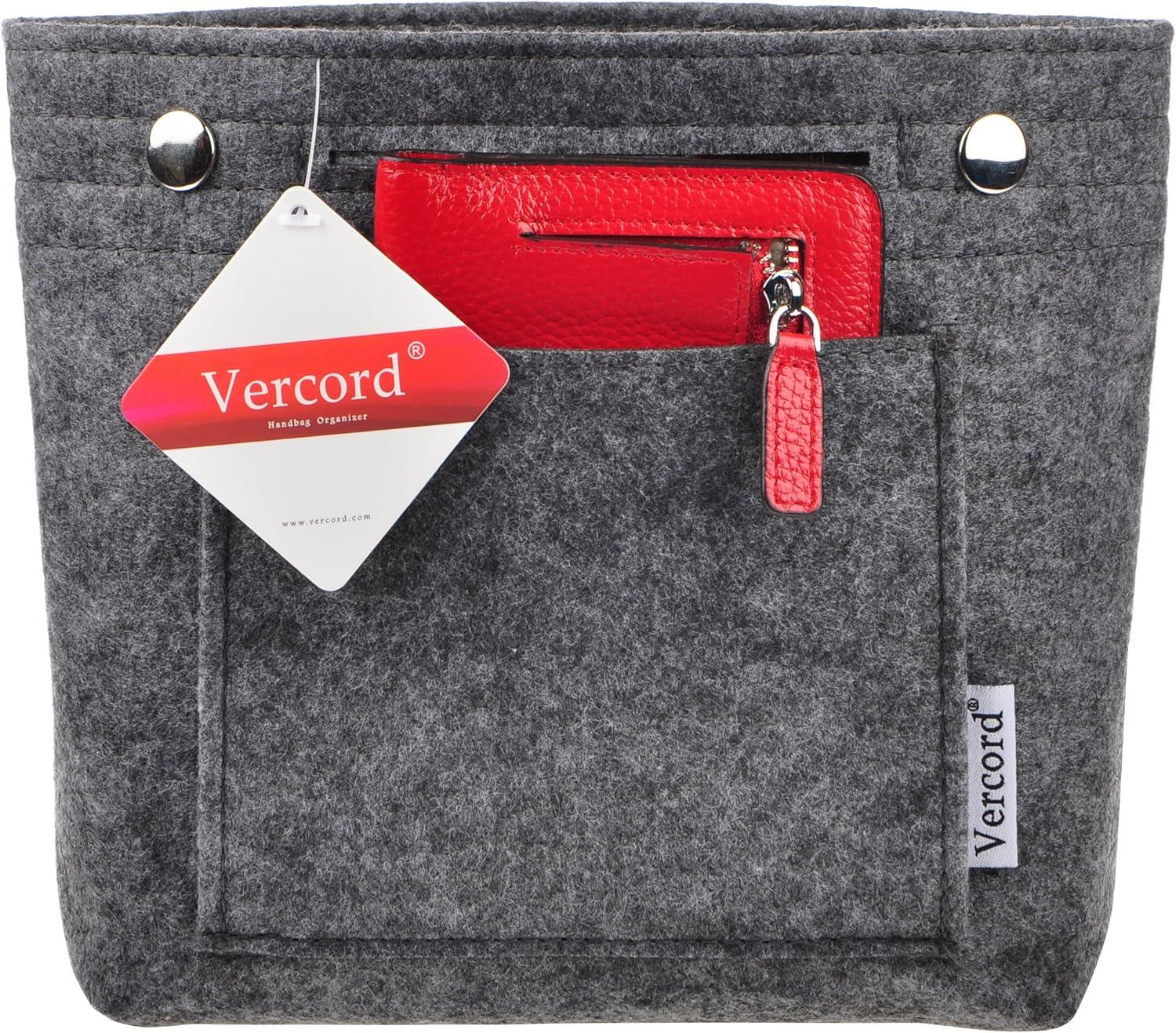 imageVercord Mini Slim Small Felt Purse Organizer Insert Inside Handbag Tote Pocketbook for Women BlackAMiniGrey