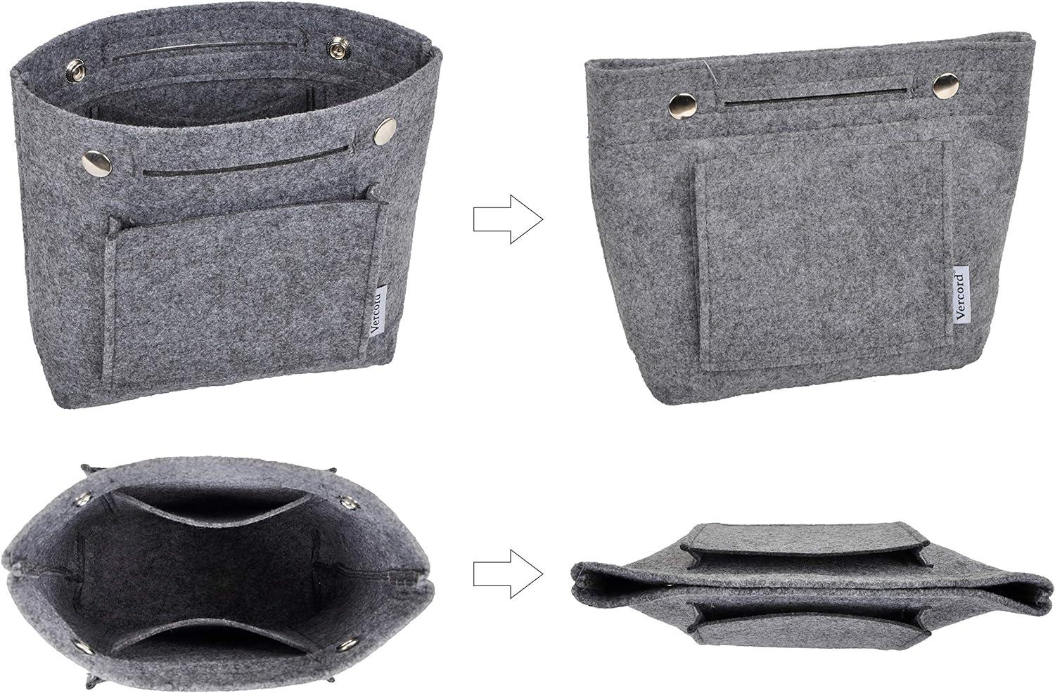 Vercord Mini Slim Small Felt Purse Organizer Insert Inside Handbag Tote Pocketbook for Women Black(A-Mini-Grey)