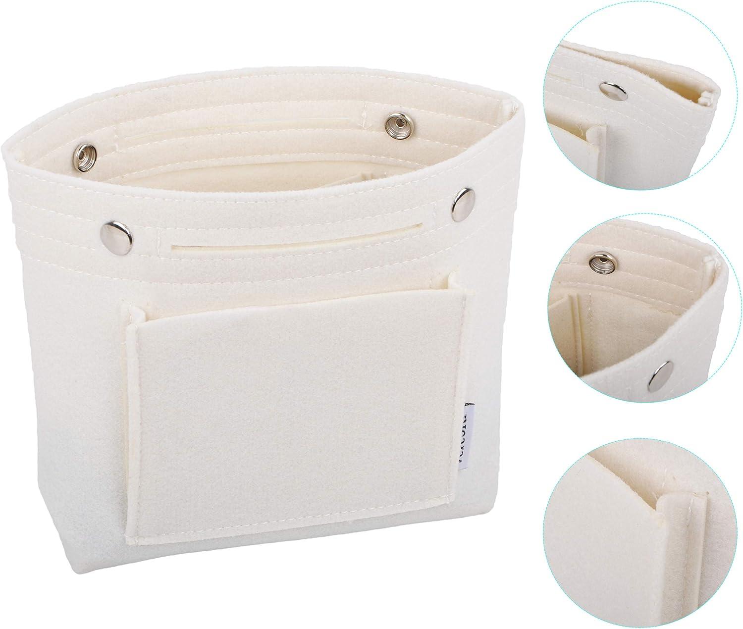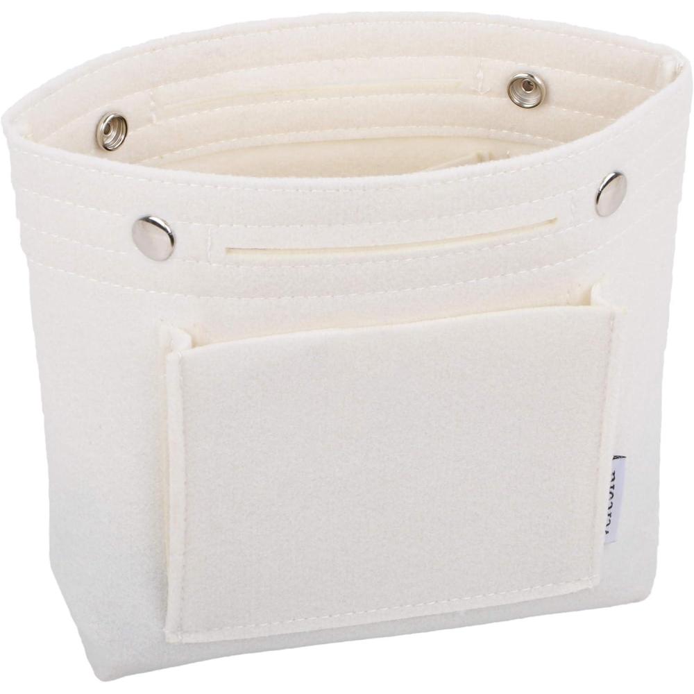 Vercord Mini Slim Small Felt Purse Organizer Insert Inside Handbag Tote Pocketbook for Women Black(A-mini-white)