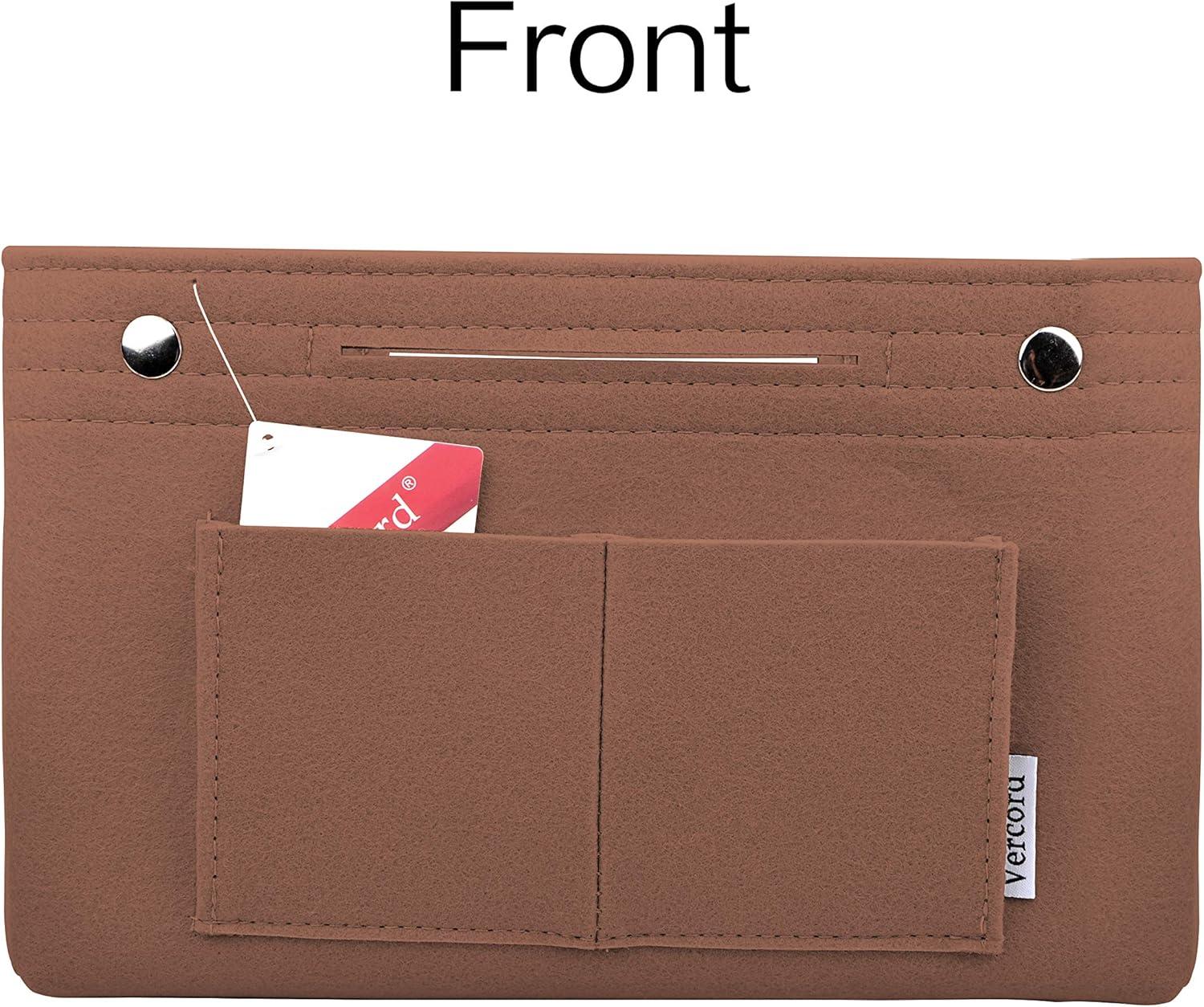 imageVercord Mini Slim Small Felt Purse Organizer Insert Inside Handbag Tote Pocketbook for Women BlackBmediumbrown