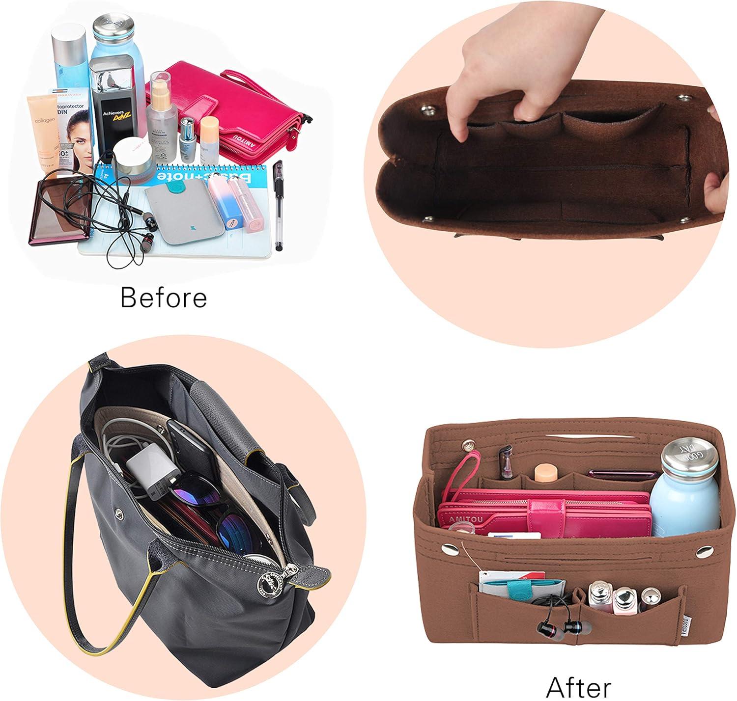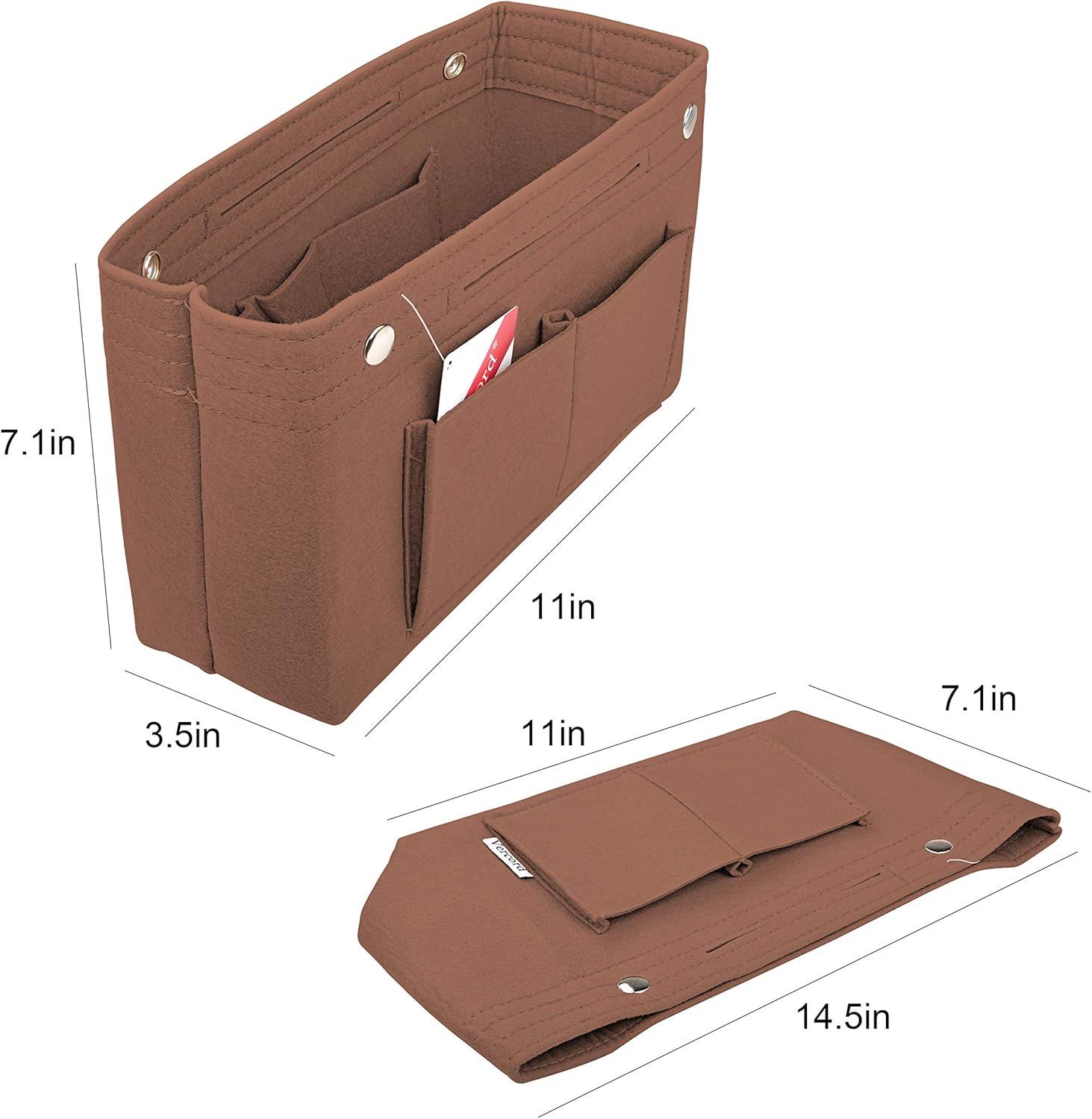 Vercord Mini Slim Small Felt Purse Organizer Insert Inside Handbag Tote Pocketbook for Women Black(B-medium-brown)