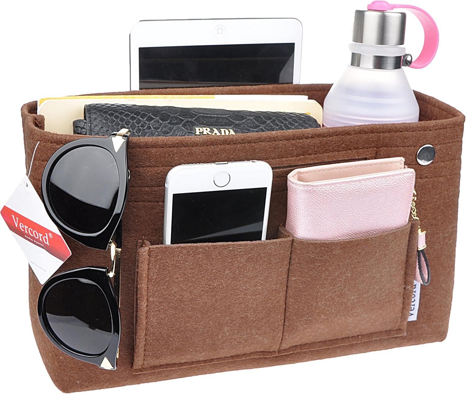 imageVercord Mini Slim Small Felt Purse Organizer Insert Inside Handbag Tote Pocketbook for Women BlackBmediumcoffee