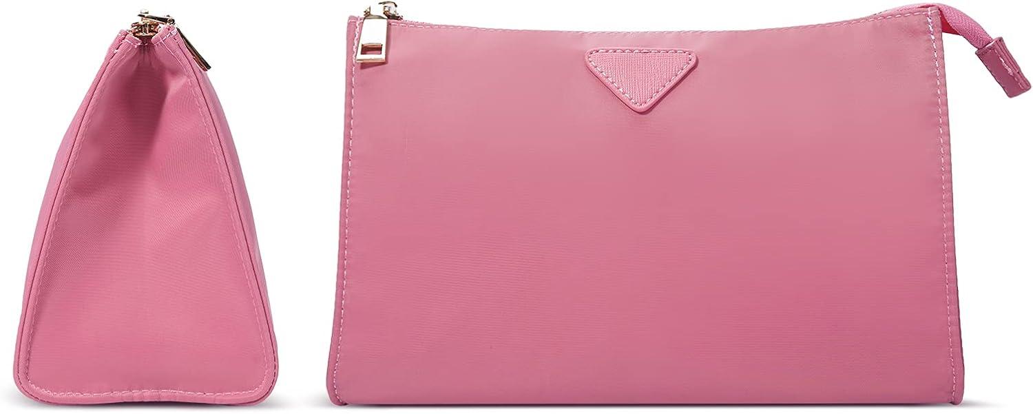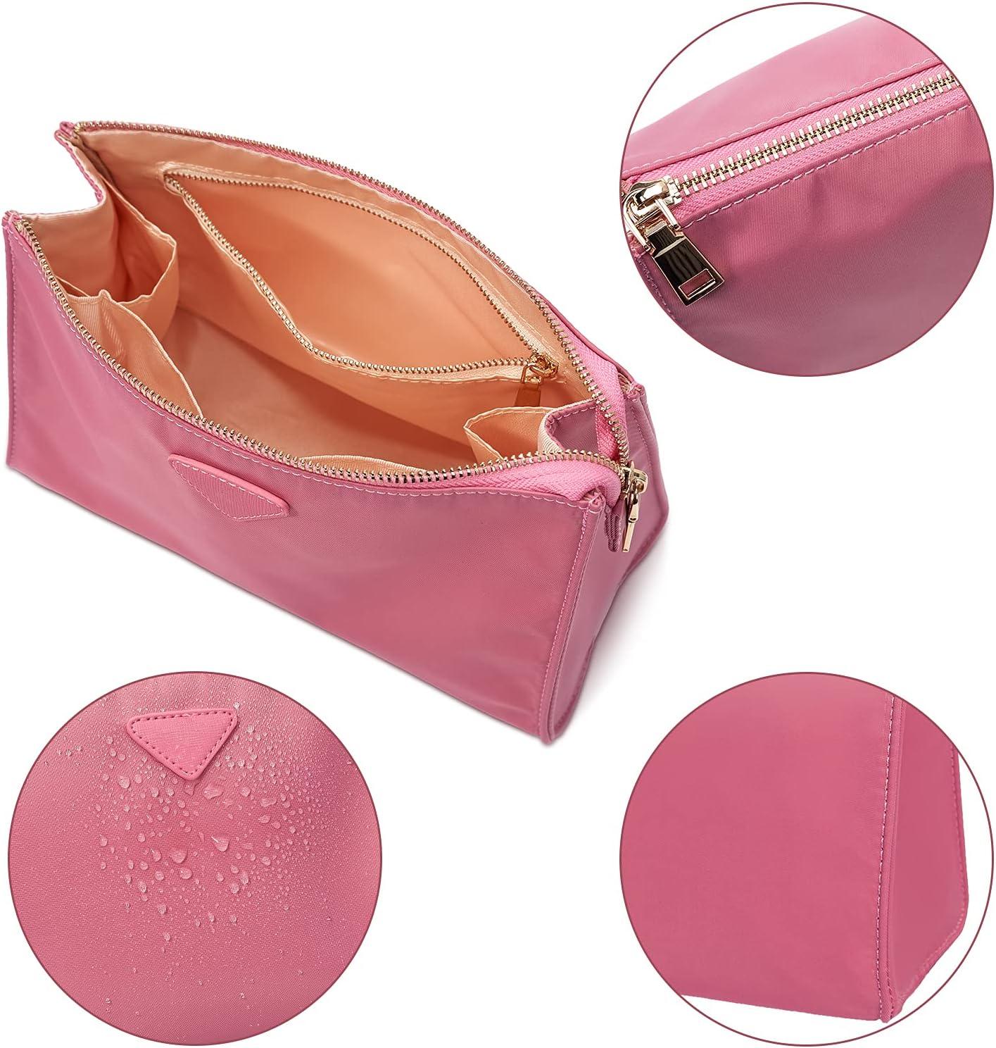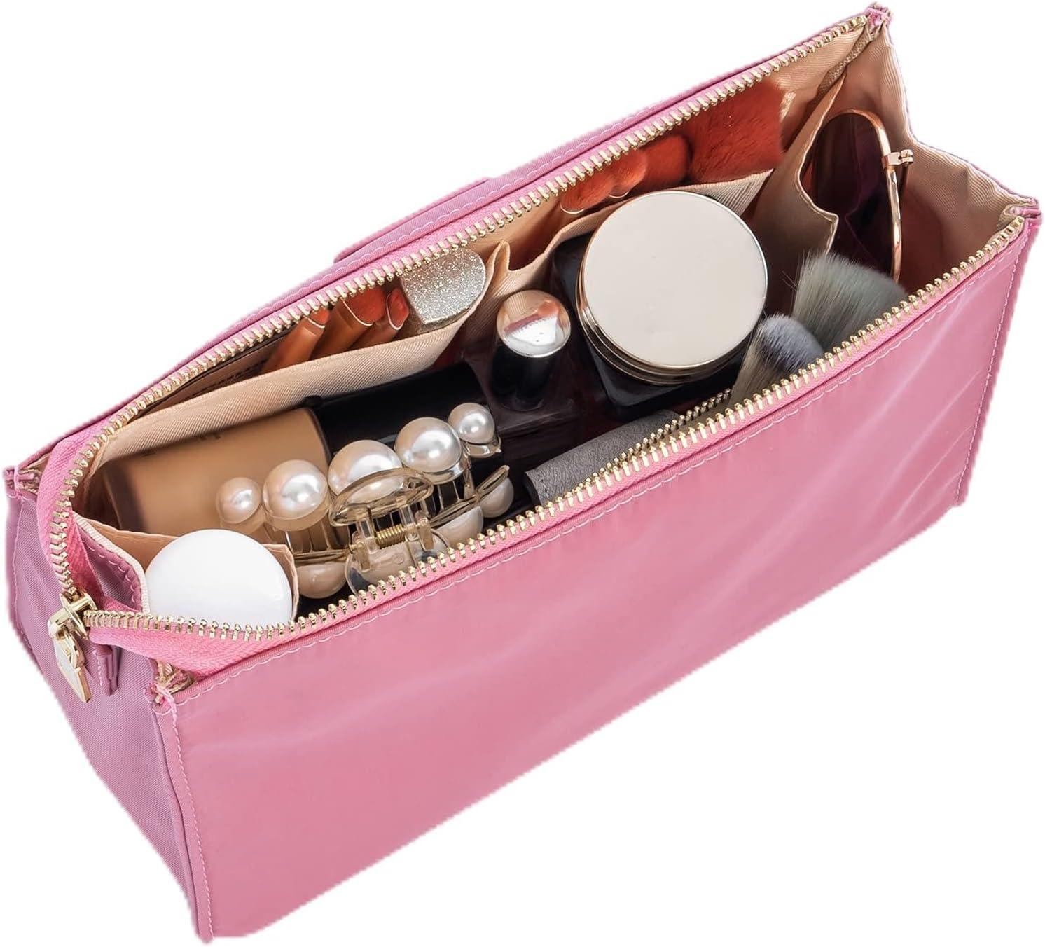 Vercord Nylon Purse Organizer Insert for Hangbags Comestic Storage Toiletry Kit Bag in Bag with Zipper Pocket Black S(Pink)