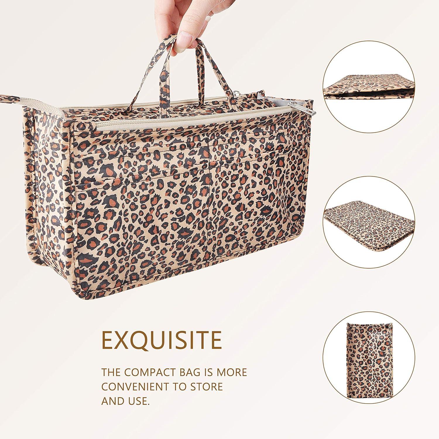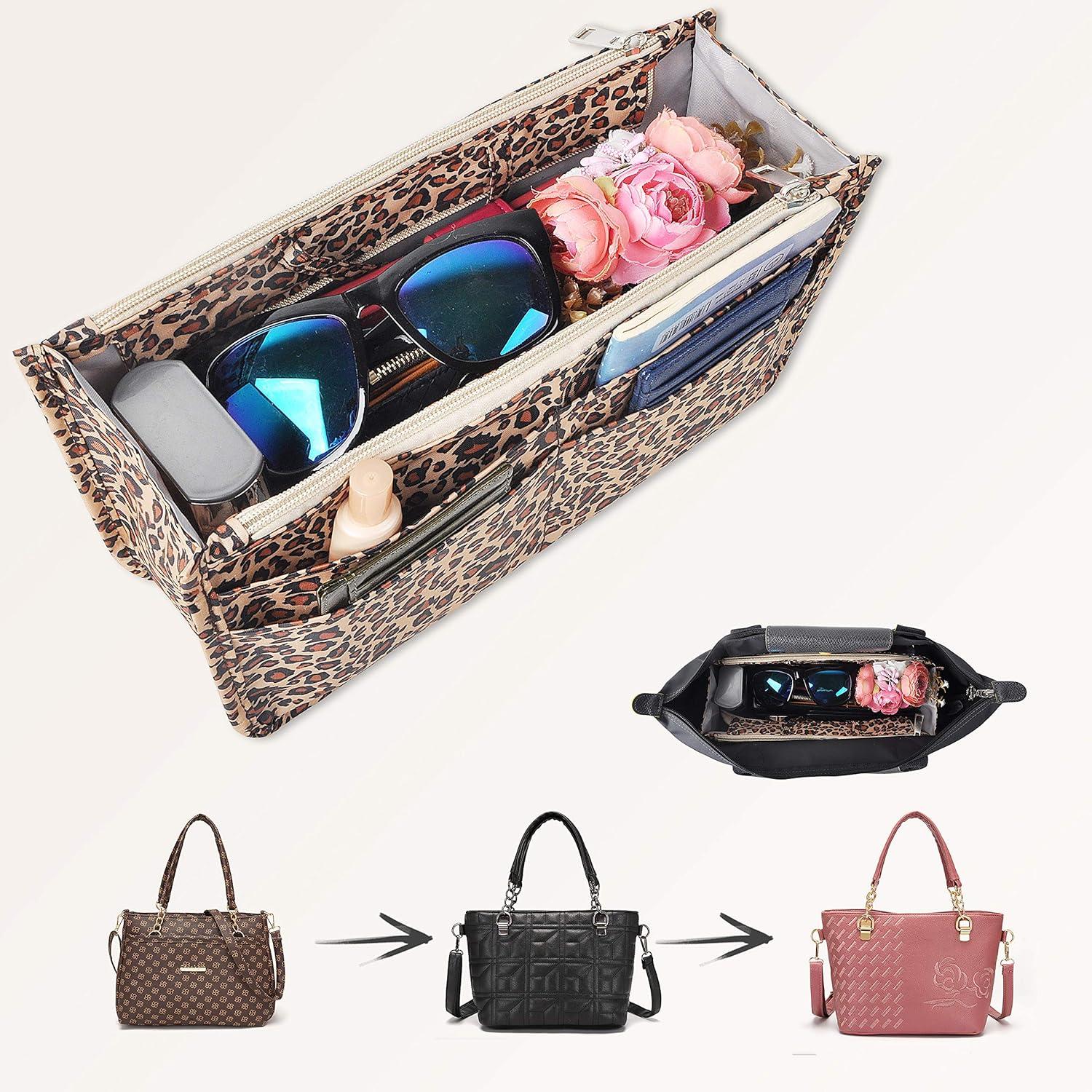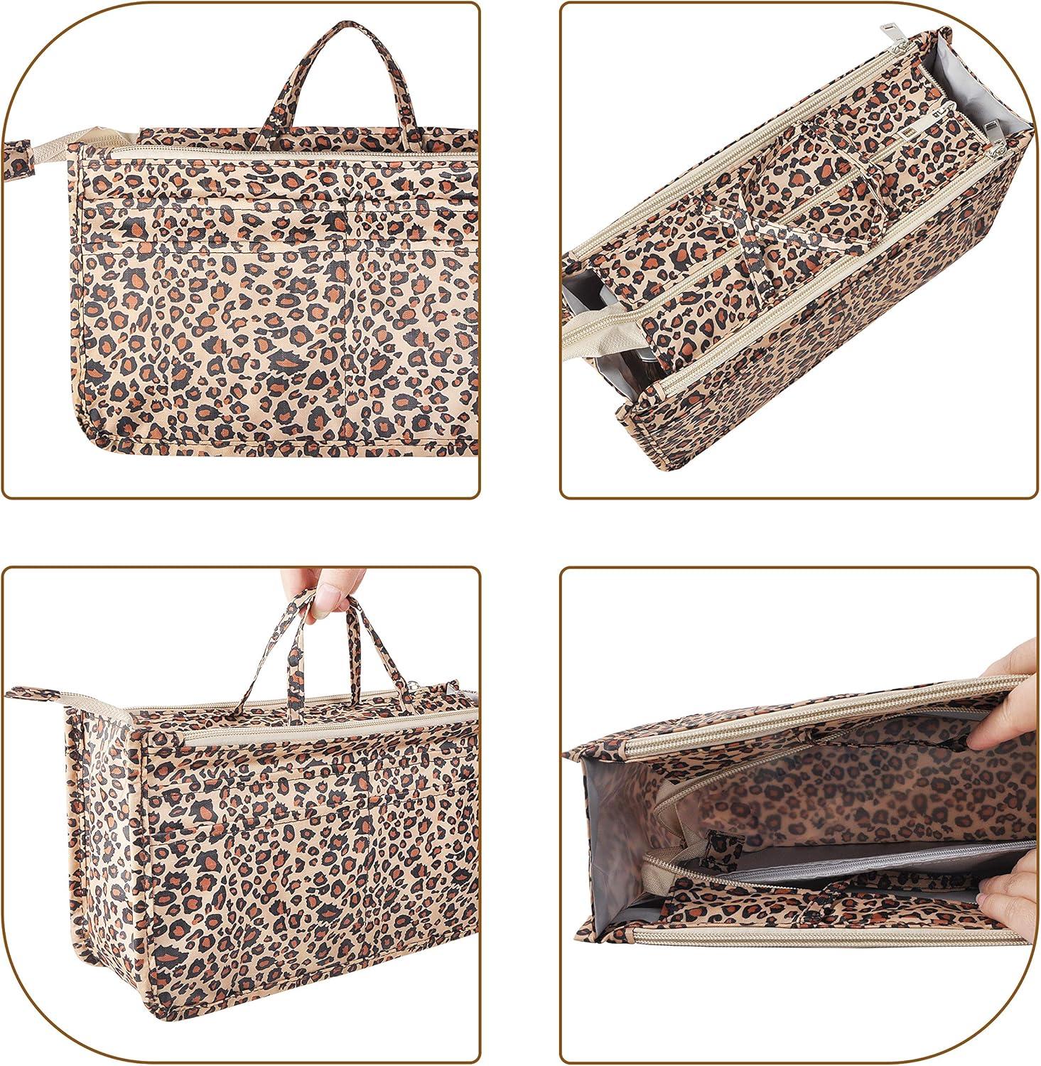 Vercord Patterned Purse Handbag Tote Pocketbook Bag Organizer Insert with Zipper Handle for Women Large Black(Leopard)