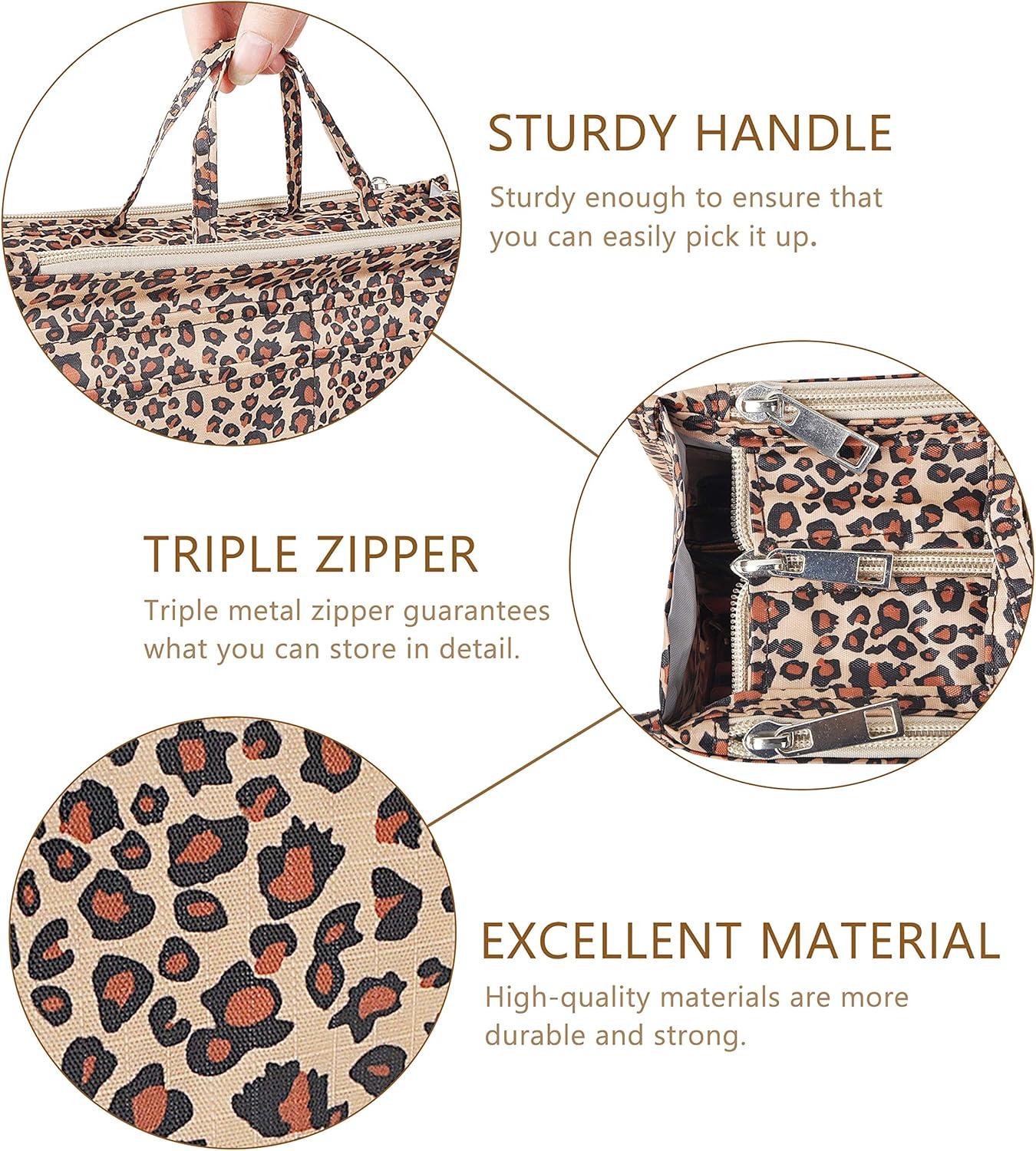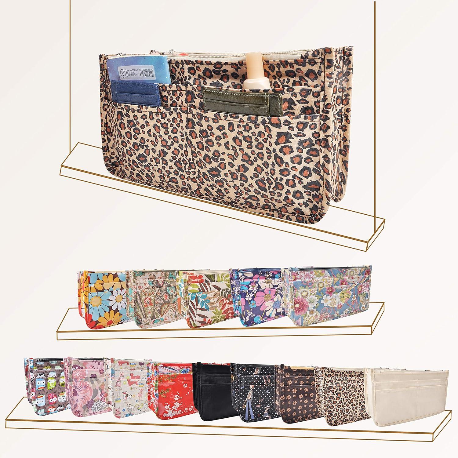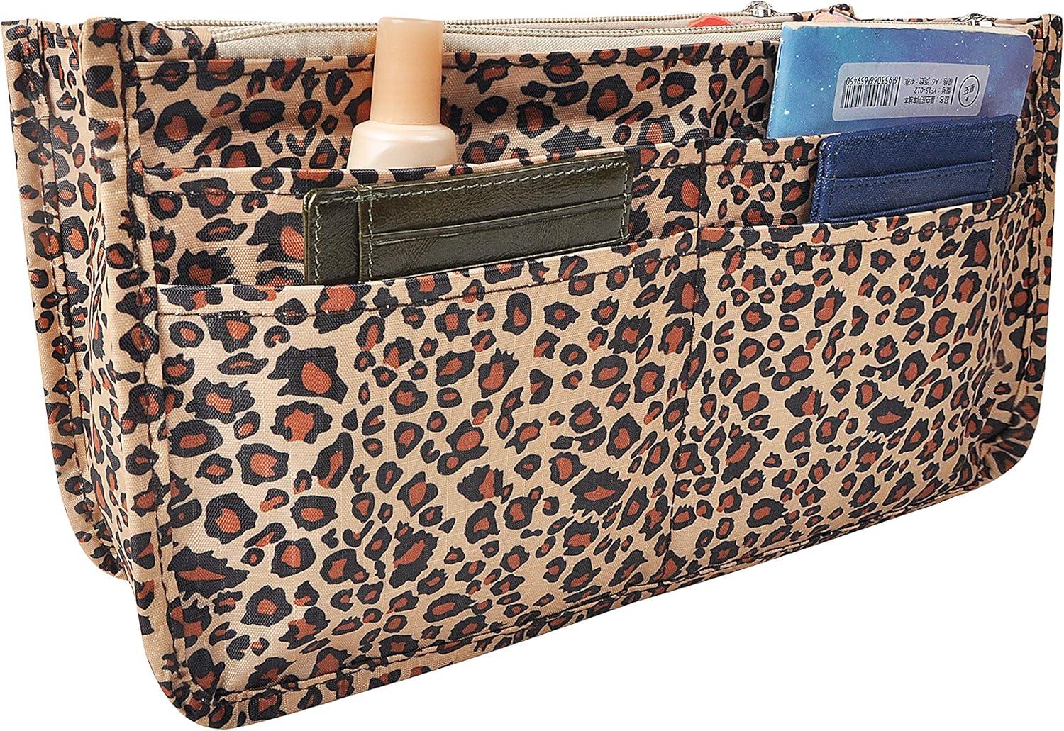 Vercord Patterned Purse Handbag Tote Pocketbook Bag Organizer Insert with Zipper Handle for Women Large Black(Leopard)