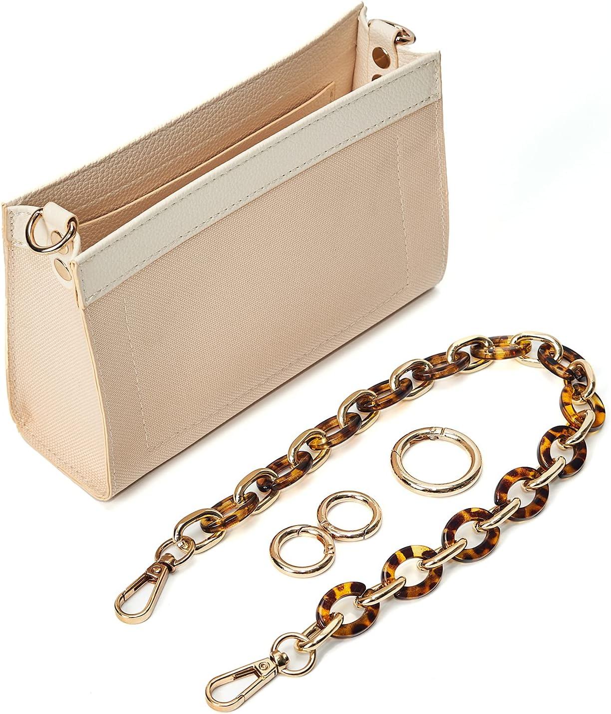 Easy conversion: As a storage bag to organize items, Side D rings attach Leopard Acrylic Chain strap convert from cluth to shoulder bag crossbody.