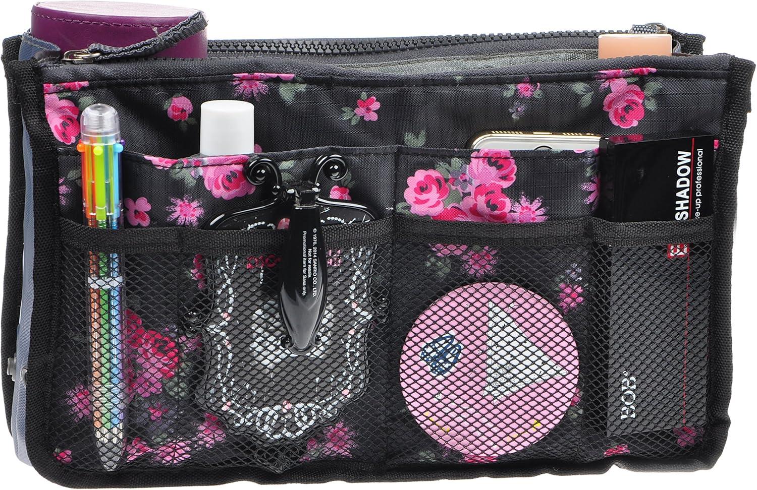 Vercord Purse Organizer Insert for Handbags Bag Organizers Inside Tote Pocketbook Women Nurse Nylon 13 Pockets Black Small(Black Red Flower)
