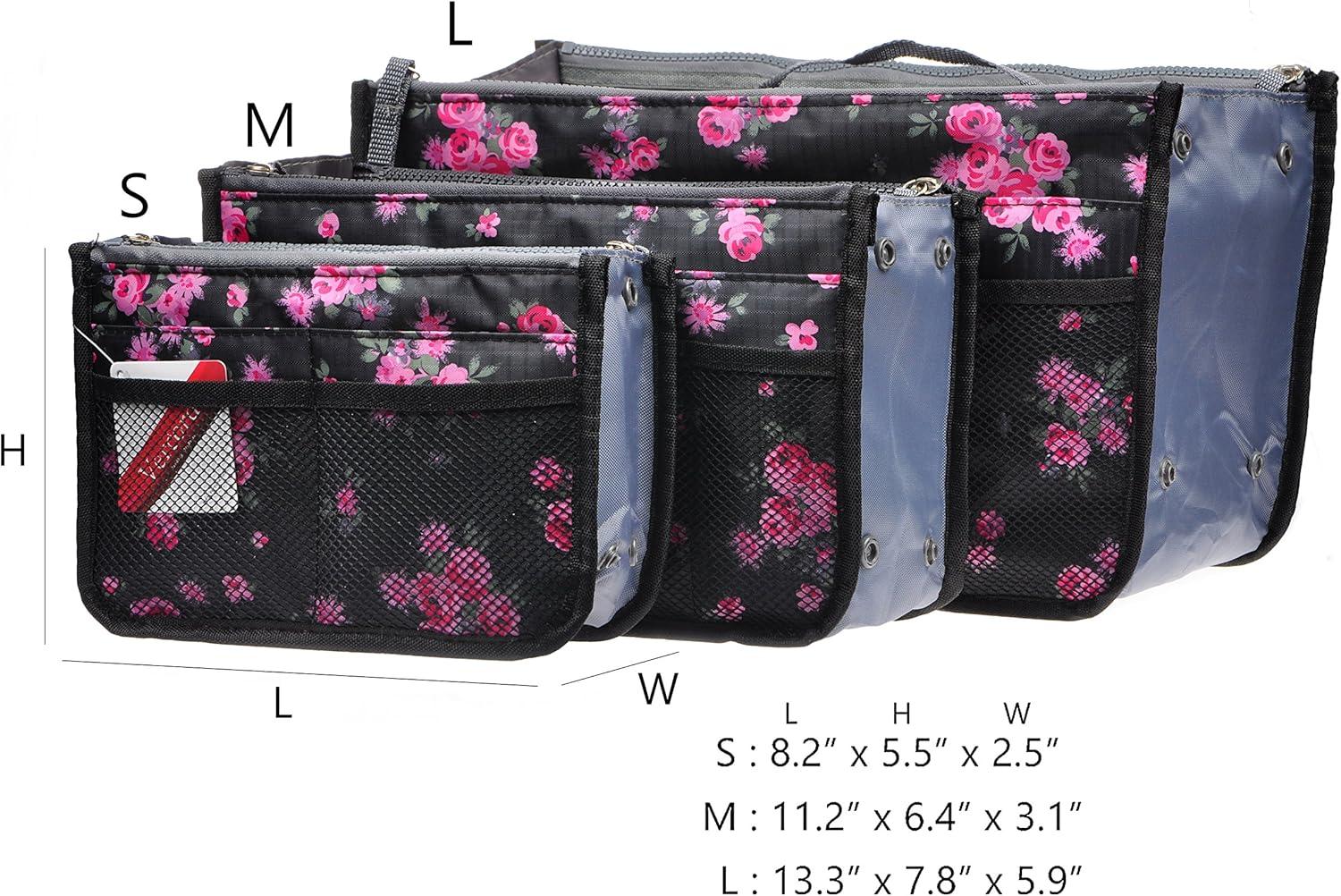 imageVercord Purse Organizer Insert for Handbags Bag Organizers Inside Tote Pocketbook Women Nurse Nylon 13 Pockets Black SmallBlack Red Flower