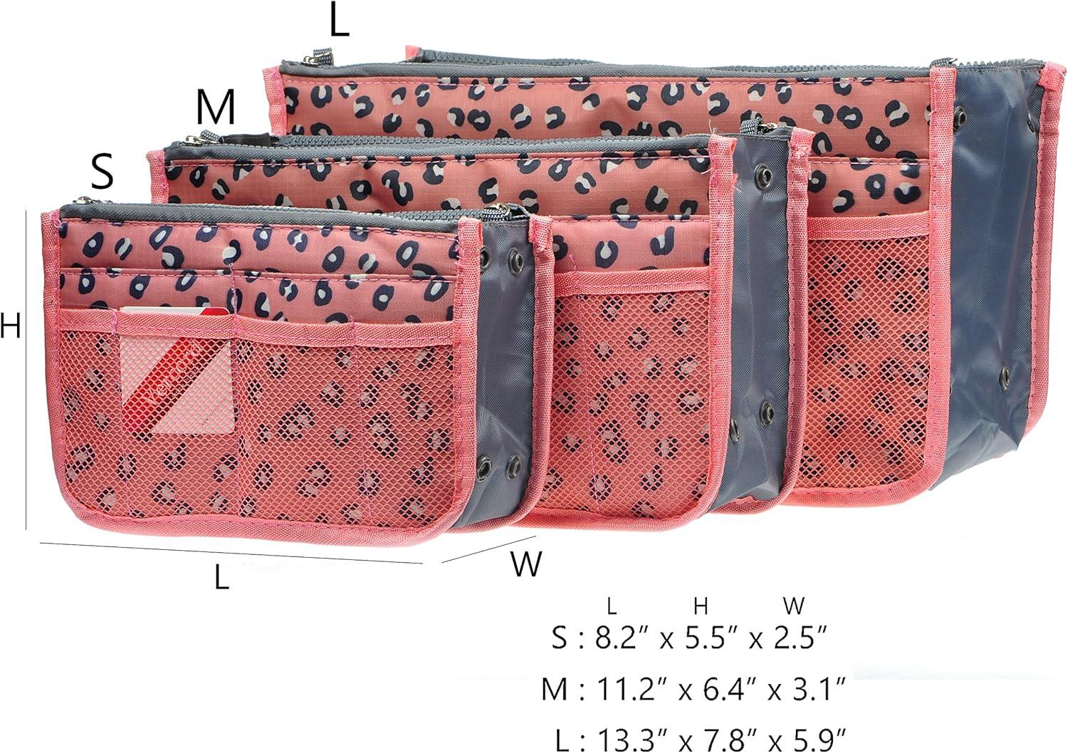 Dimension (Length*Width*Height), Small: 8.2″*2.5″*5.5″; Medium: 11.2″*3.1″*6.4″; Large: 13.3″*5.9″*7.8″. Measure your handbags' interior first to make sure you get the fit one.