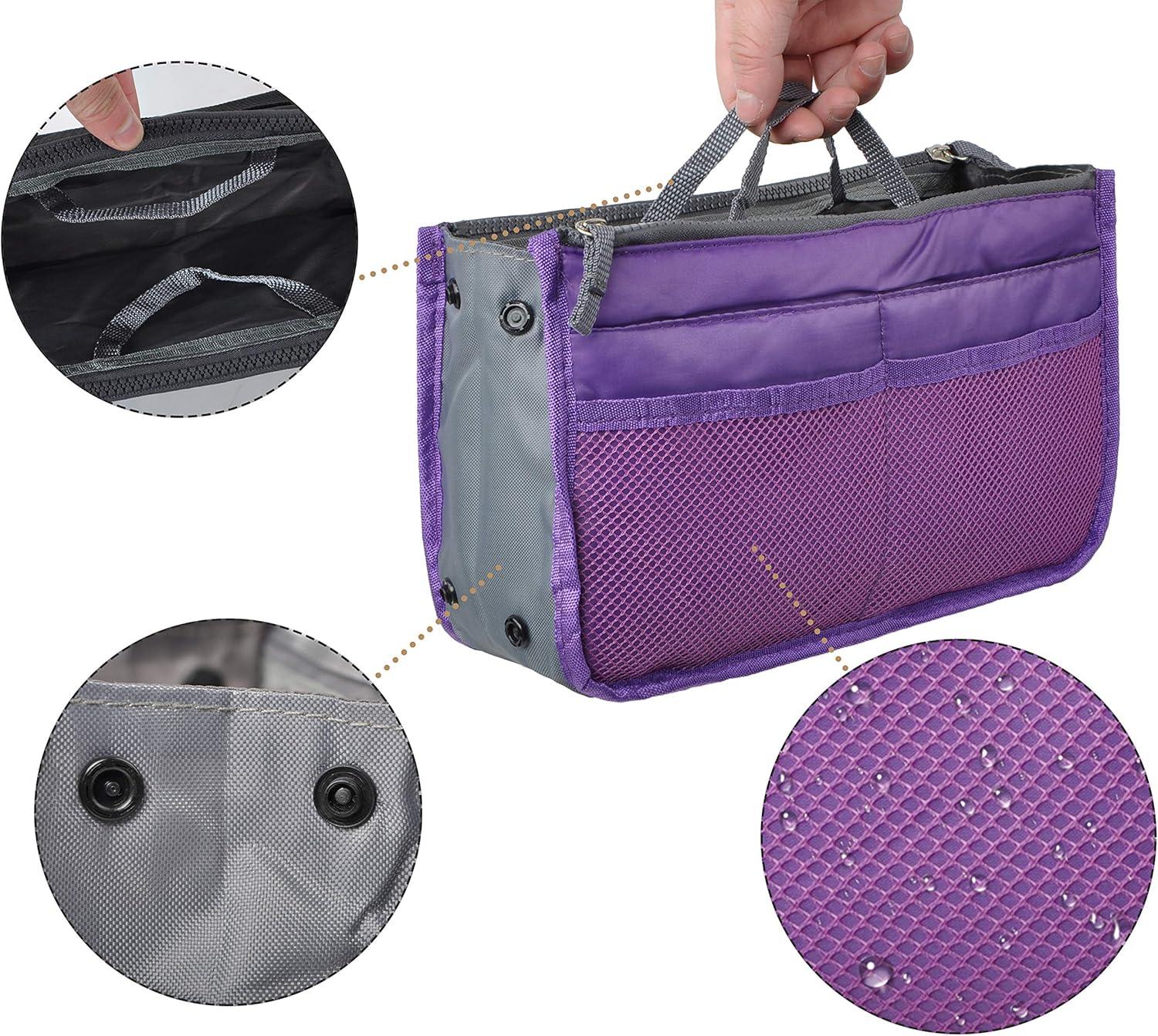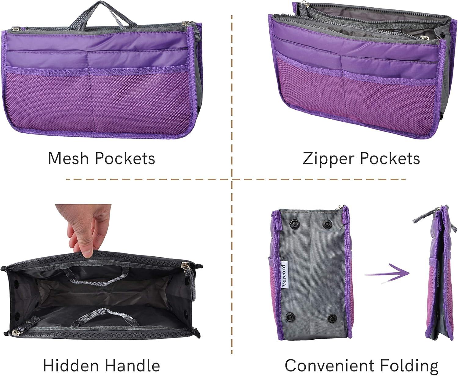 Vercord Purse Organizer Insert for Handbags Bag Organizers Inside Tote Pocketbook Women Nurse Nylon 13 Pockets Black Small(Purple)