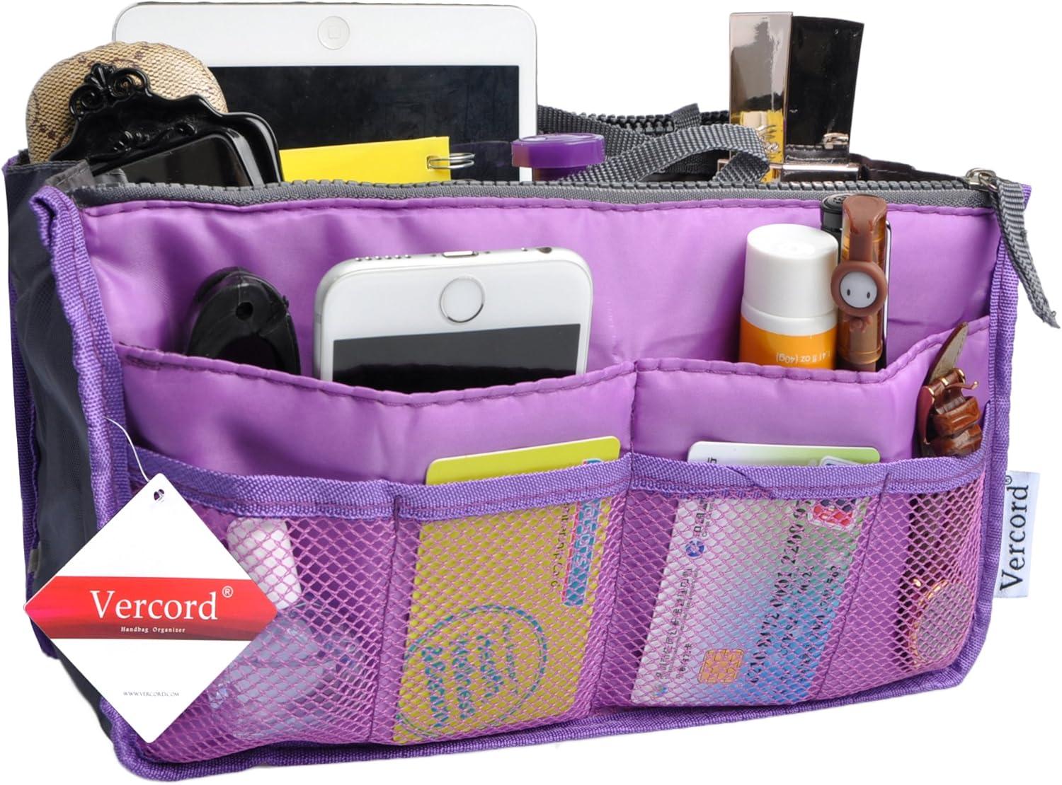 imageVercord Purse Organizer Insert for Handbags Bag Organizers Inside Tote Pocketbook Women Nurse Nylon 13 Pockets Black SmallPurple