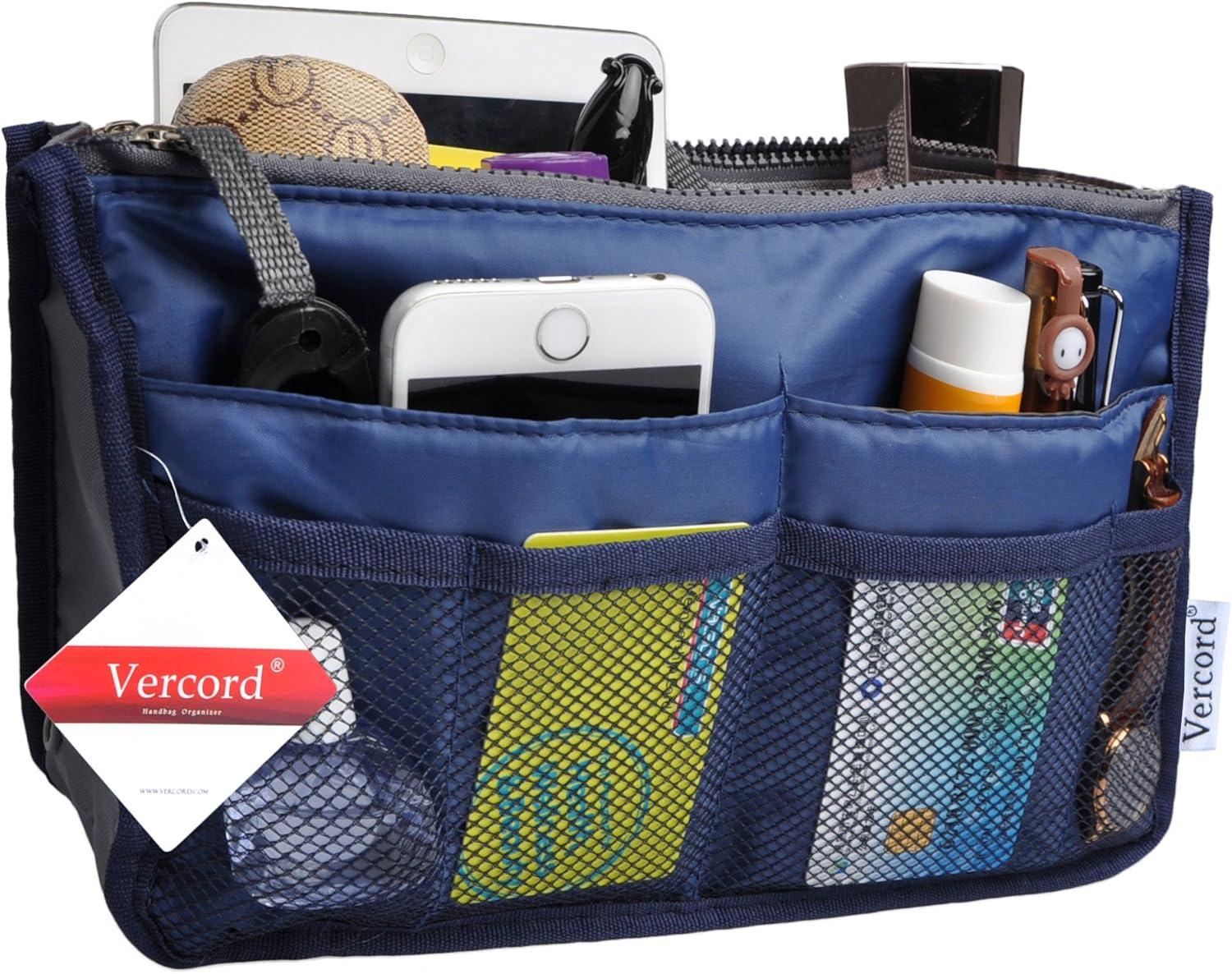 imageVercord Purse Organizer Insert for Handbags Bag Organizers Inside Tote Pocketbook Women Nurse Nylon 13 Pockets Black SmallSapphire Blue