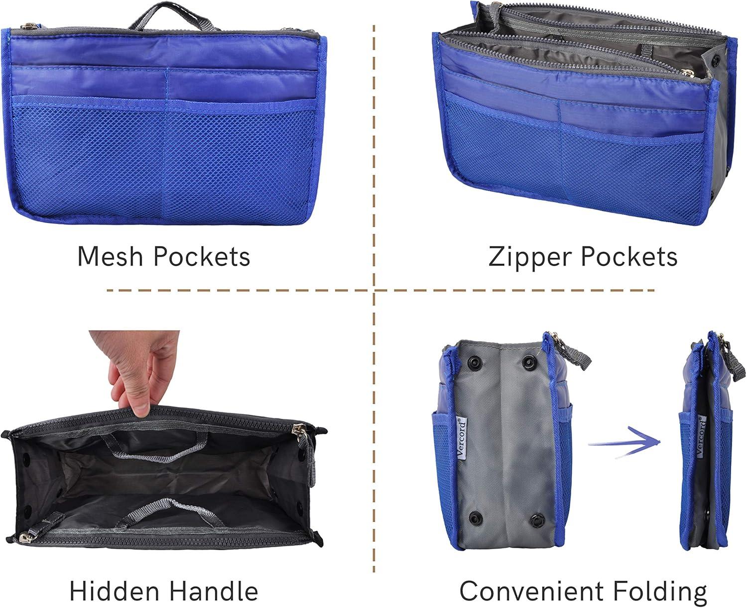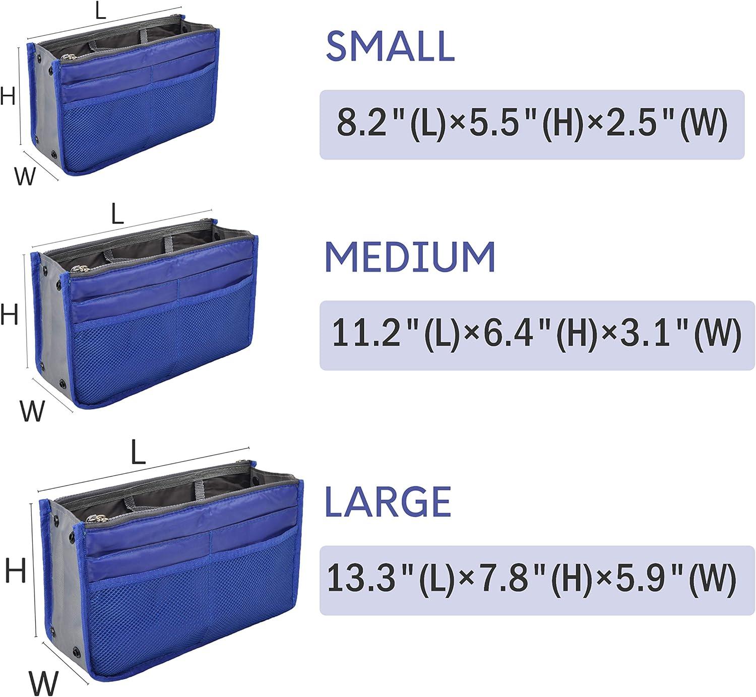 Vercord Purse Organizer Insert for Handbags Bag Organizers Inside Tote Pocketbook Women Nurse Nylon 13 Pockets Black Small(Sapphire Blue)