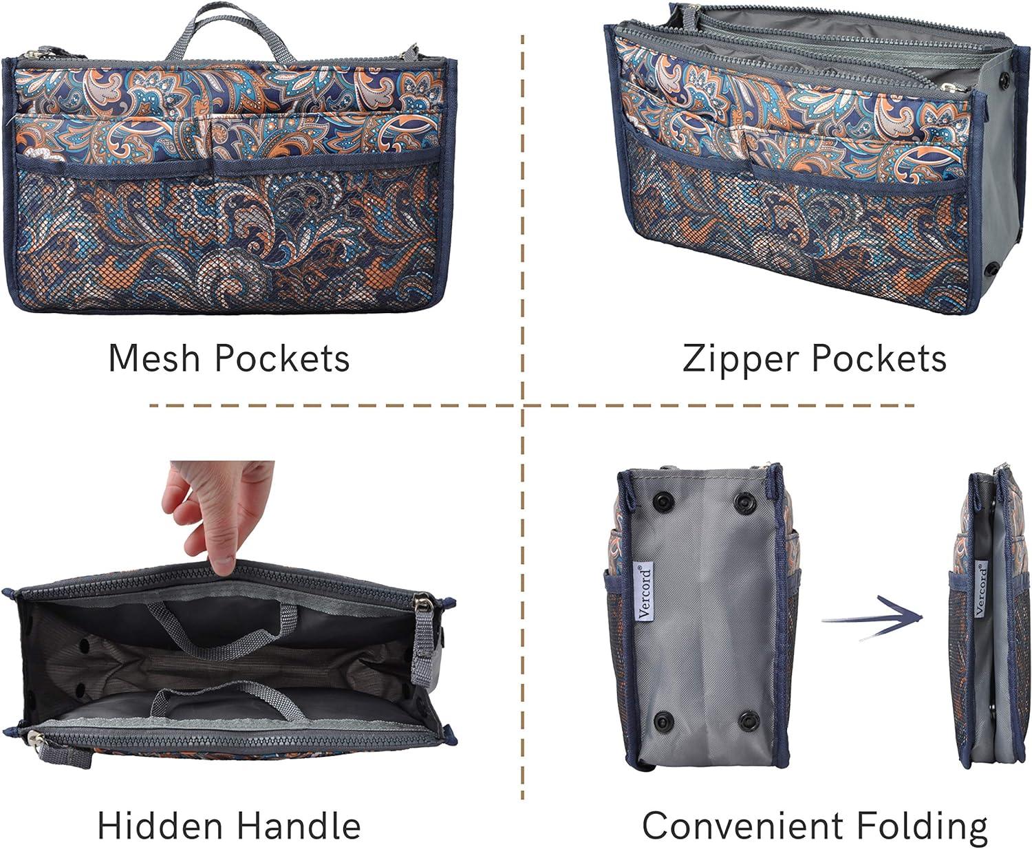 imageVercord Purse Organizer Insert for Handbags Bag Organizers Inside Tote Pocketbook Women Nurse Nylon 13 Pockets Black SmallSapphire Blue