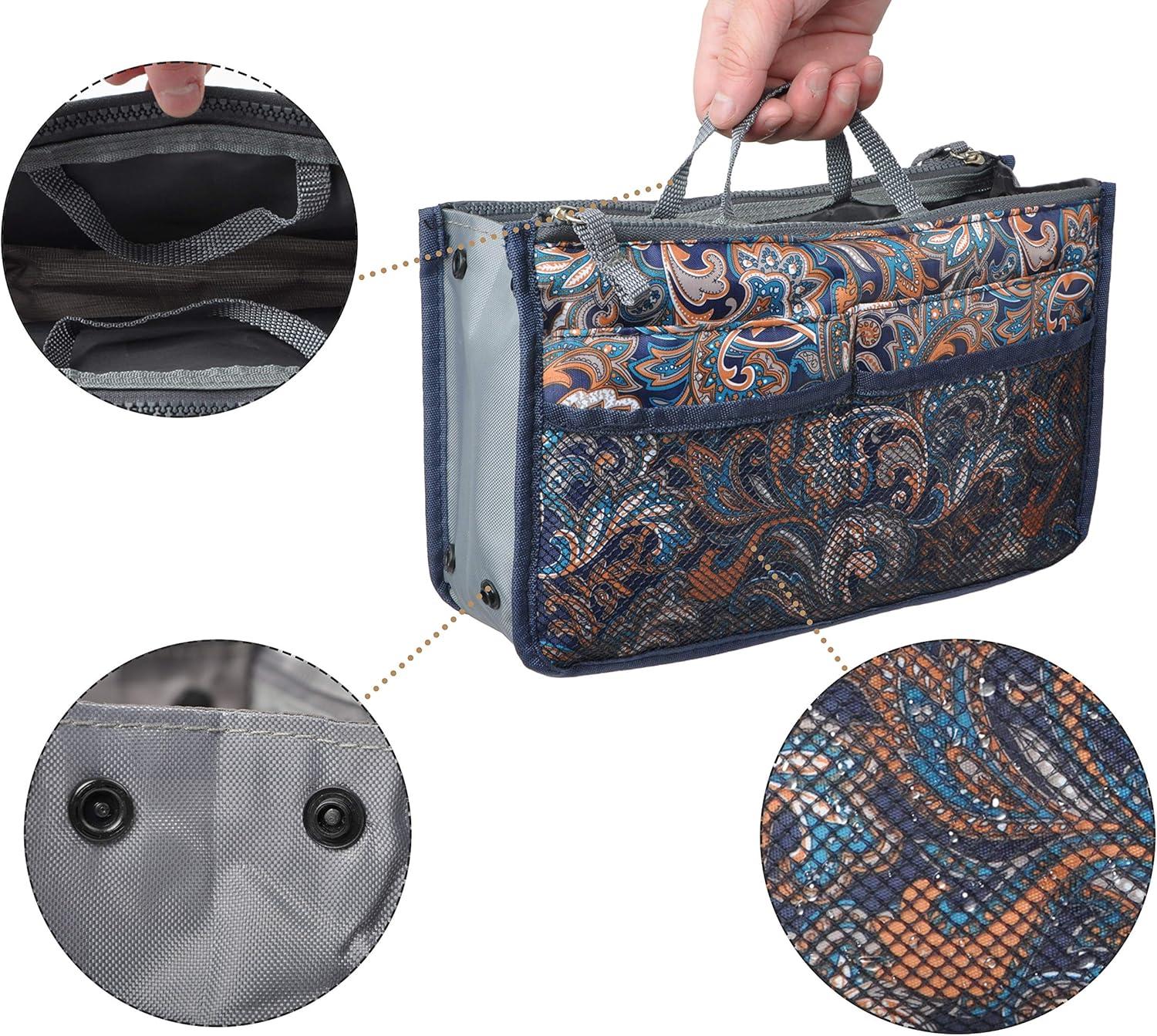 Vercord Purse Organizer Insert for Handbags Bag Organizers Inside Tote Pocketbook Women Nurse Nylon 13 Pockets Black Small(Sapphire Blue)