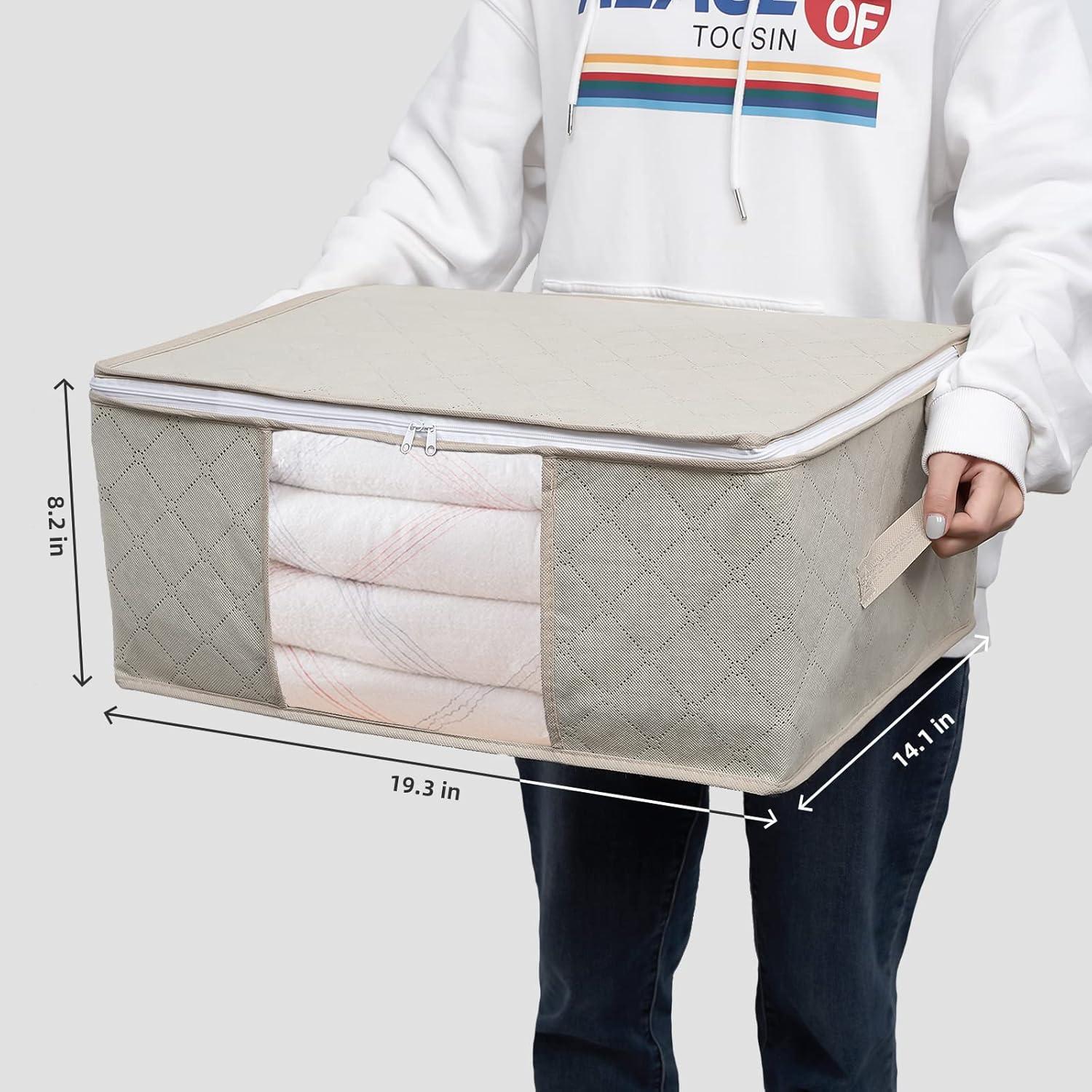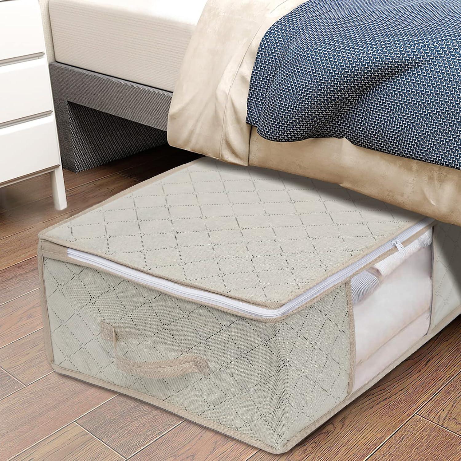 Large Capacity:The underbed storage bag 3 pack as a set,one bag 37L (L19.3*H8.2*W14.1IN).For organizer clothes, blankets, quilts, pillows,toy,etc.