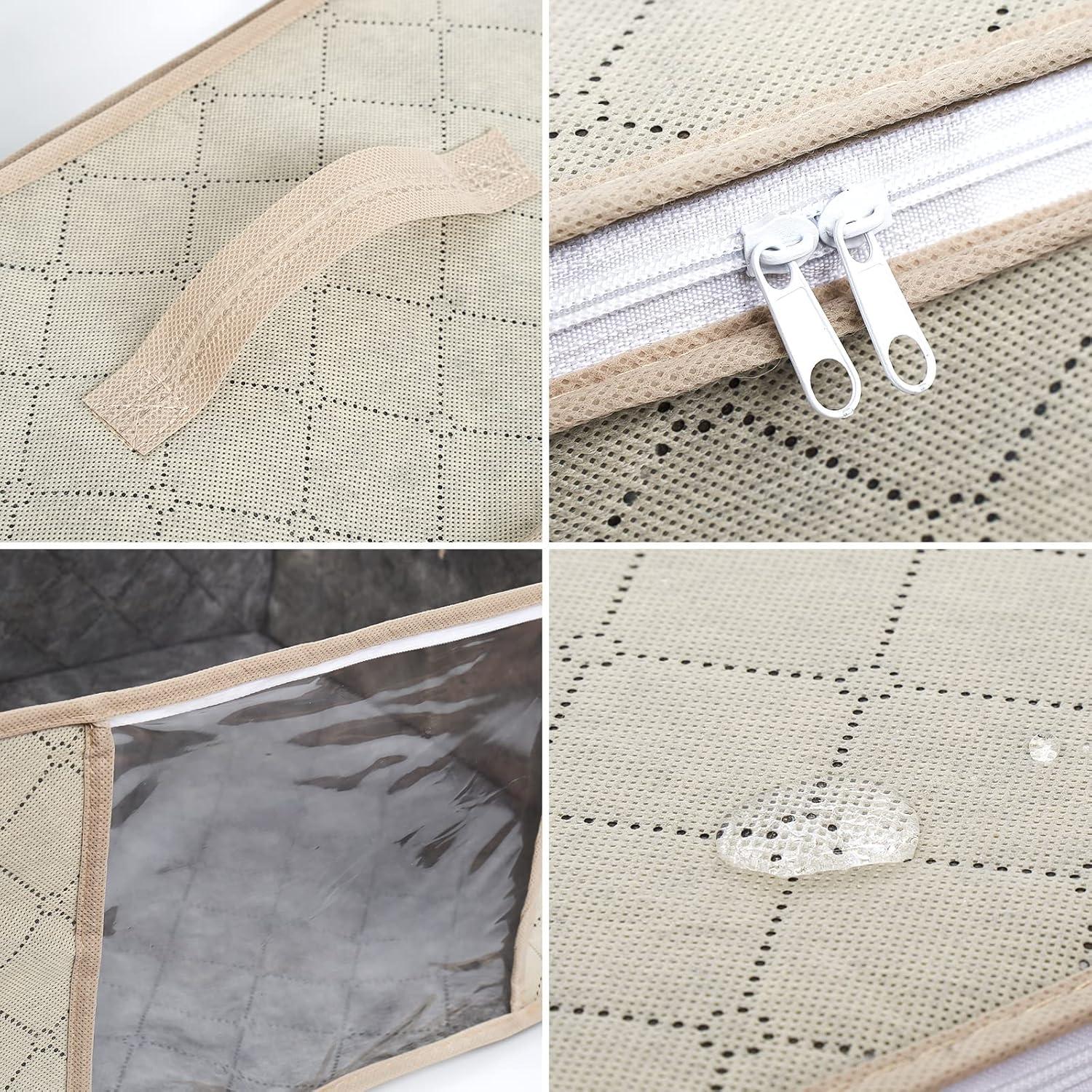 Vercord Underbed Storage Bag Closet Organizers Bins Clothes Storage Baskets Foldable Containers Bedroom 3 Pack with Clear Window Handles Beige