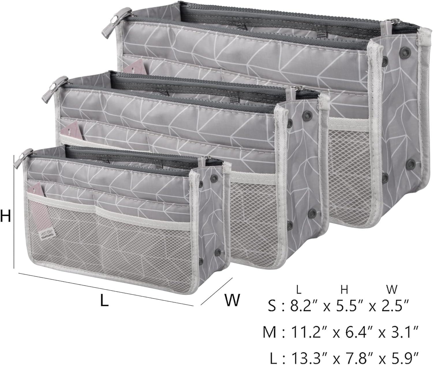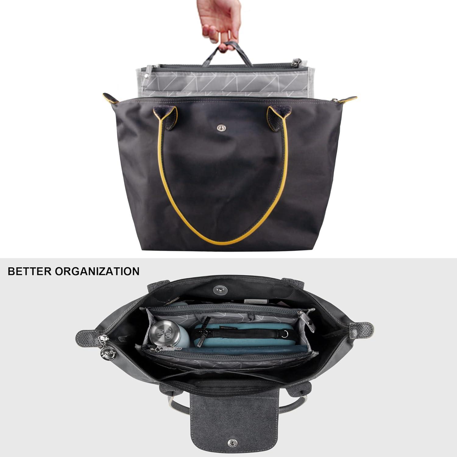 Vercord Updated Purse Handbag Organizer Insert Liner Bag in Bag 13 Pockets Black Medium(Light Grey)